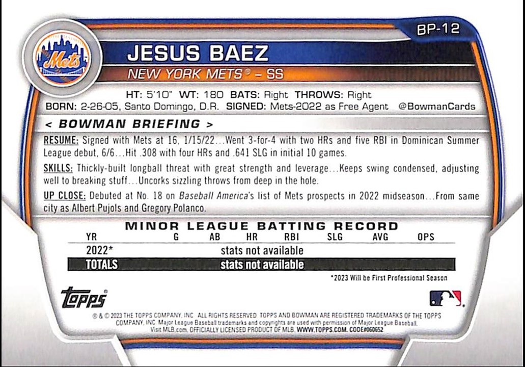 Bowman 2023: Jesus Baez {Bowman 1st}