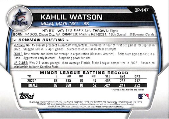 Bowman 2023: Kahlil Watson