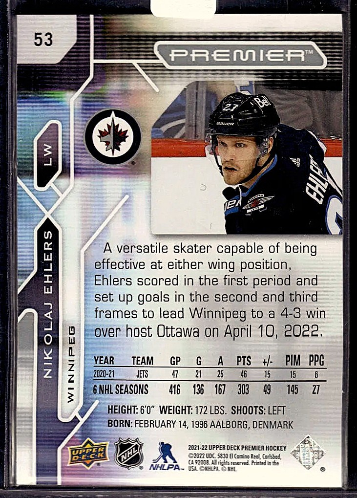 Nikolaj Ehlers: 2021-22 Upper Deck {Premiere} - SP # 139/299