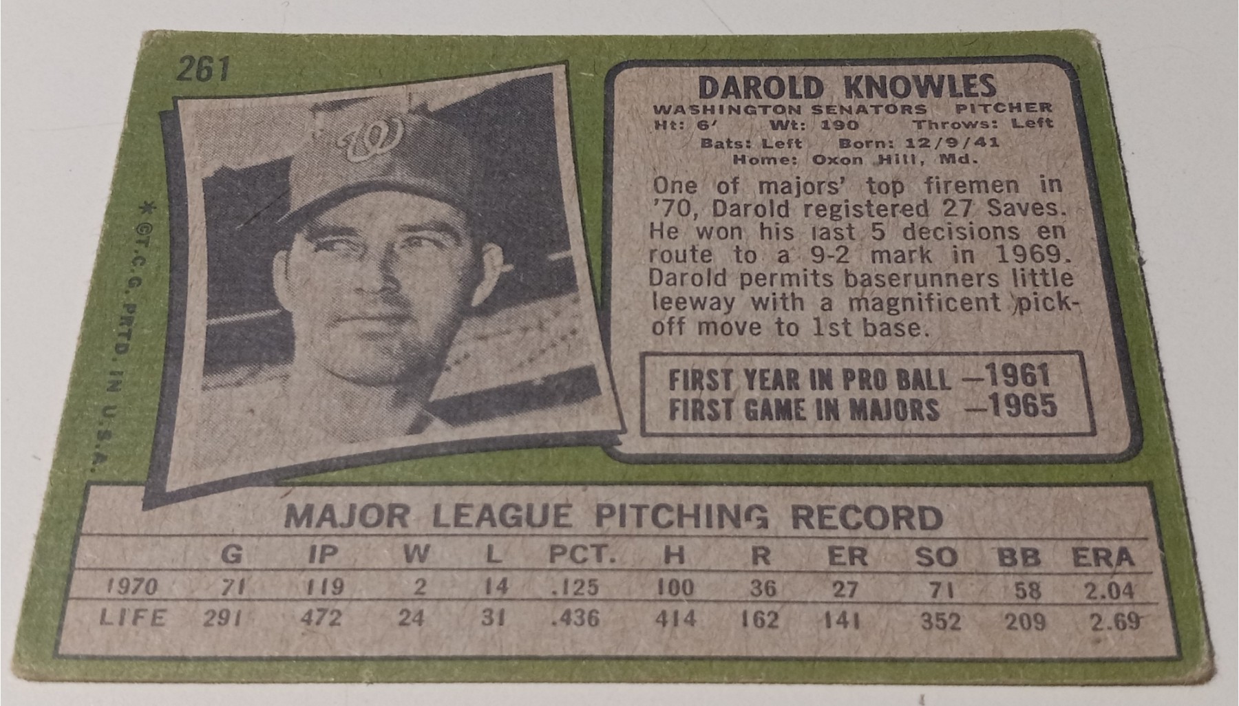 Was a fantastic reliever in 1970 with 27 saves. Had excellent pick off move to first base!