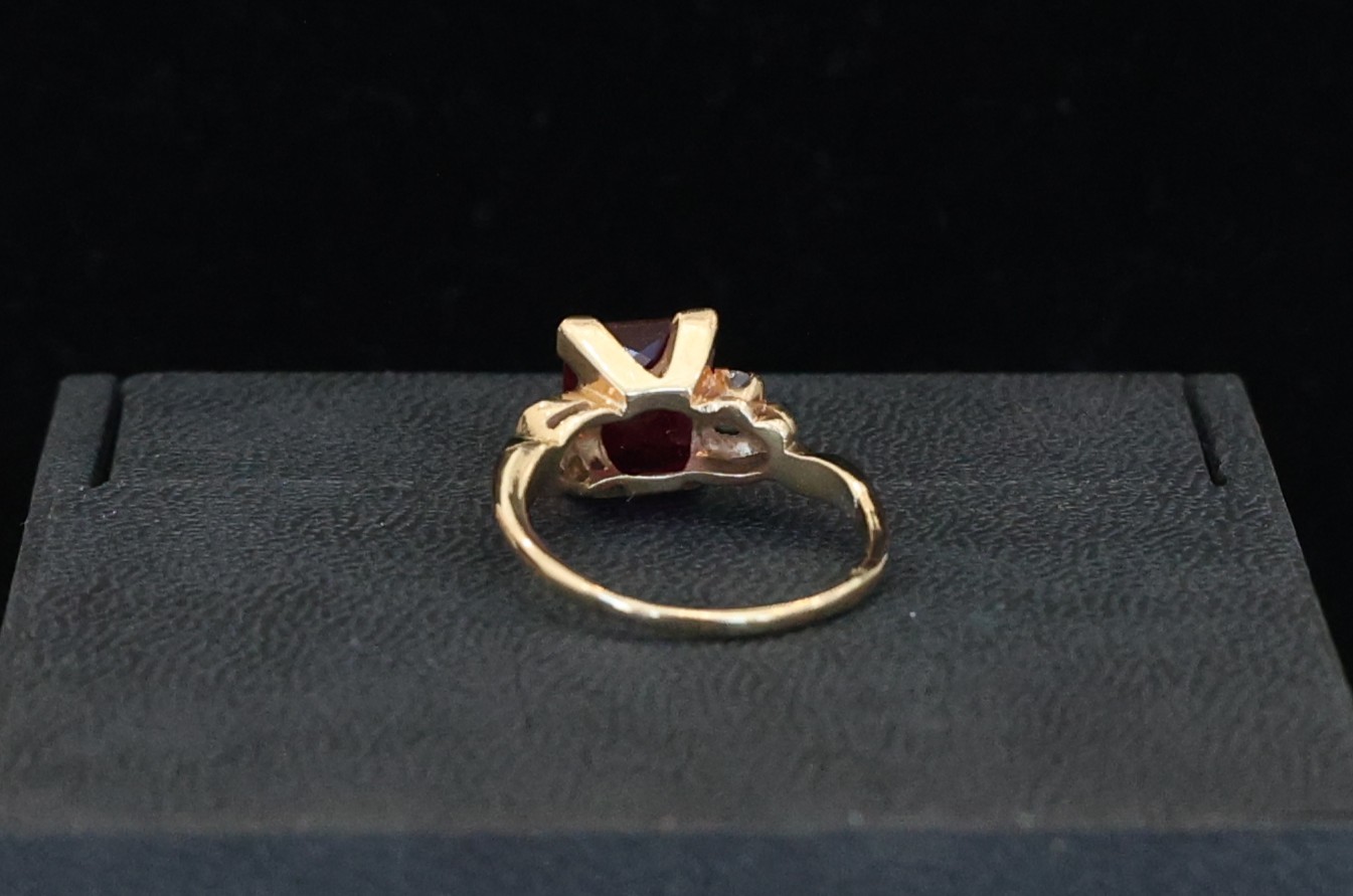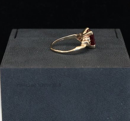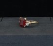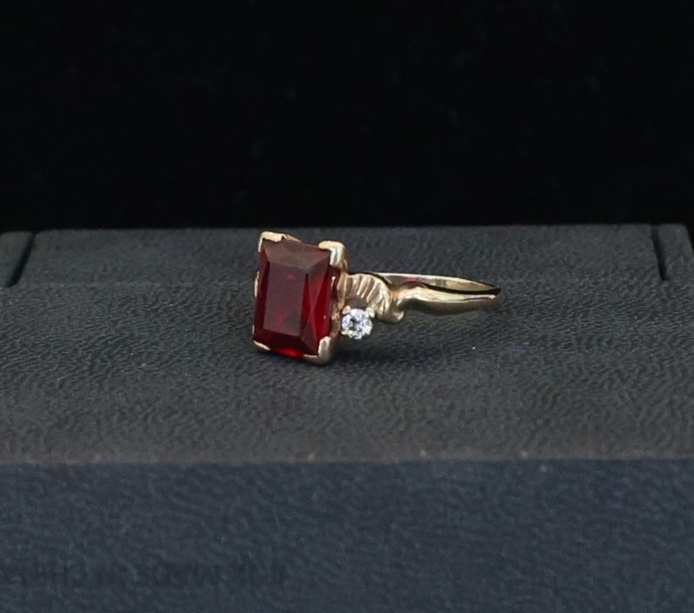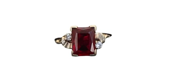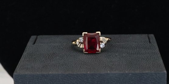 10k yellow gold ring size 7.5 with a Ruby and two small approx .03ct each