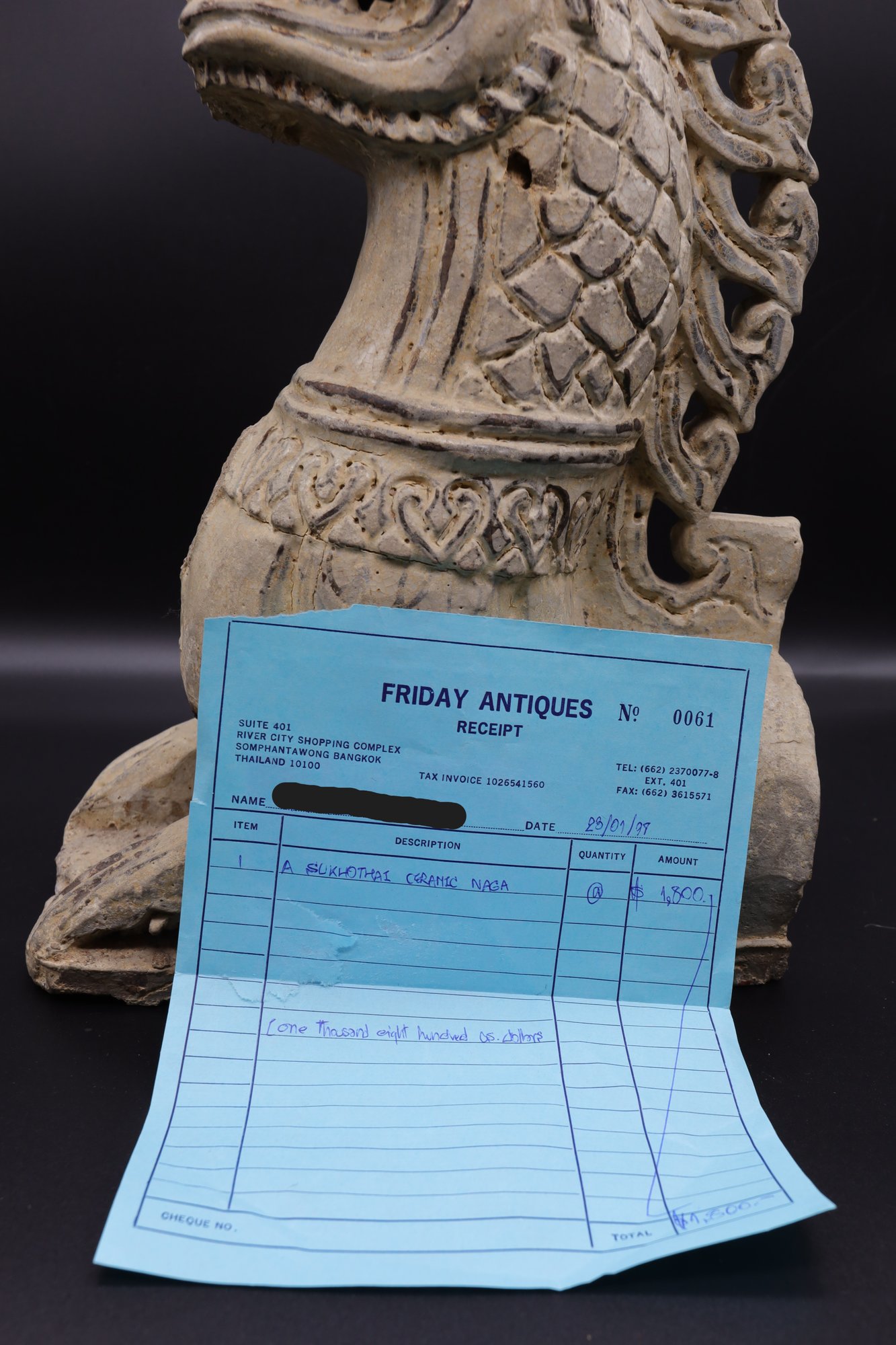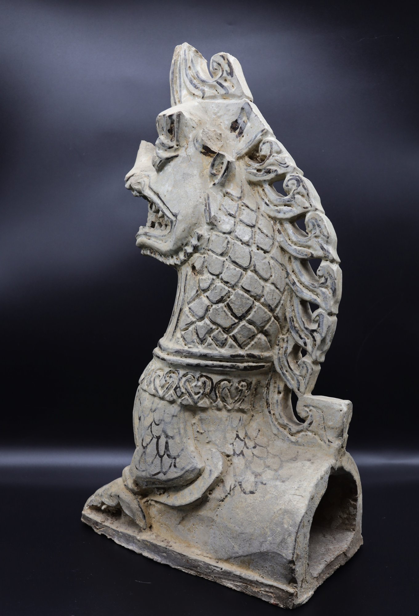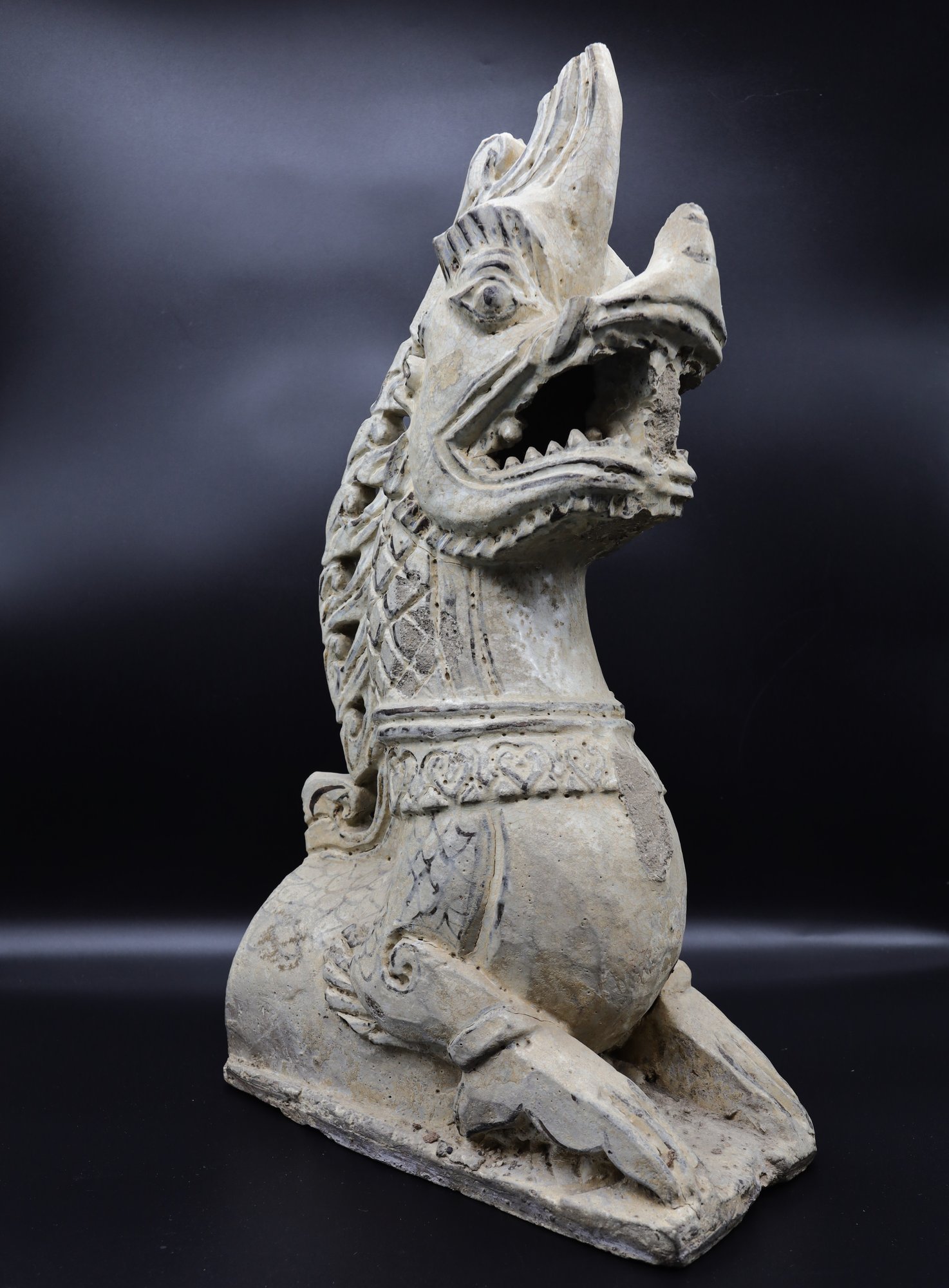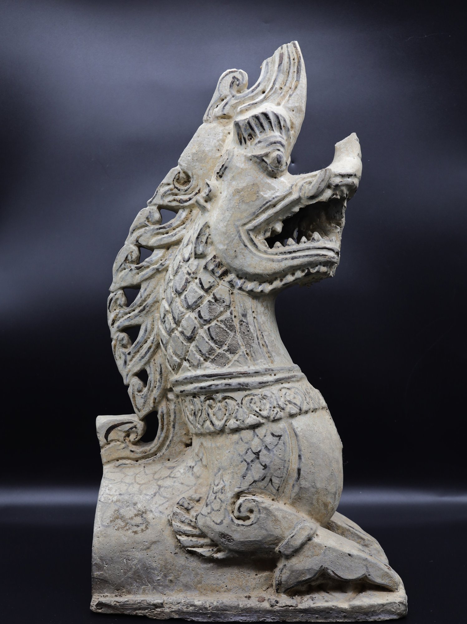 14-16th Century Sukhothai Ceramic Naga Roof Finial- hollow -modelled .