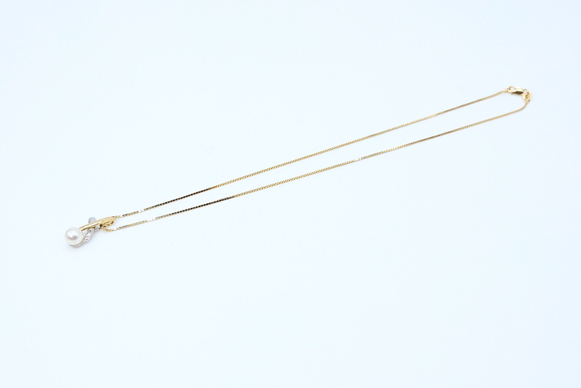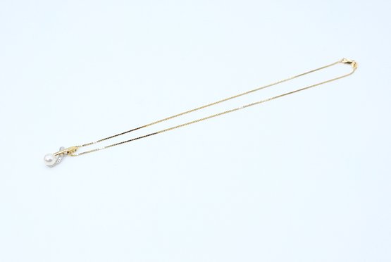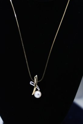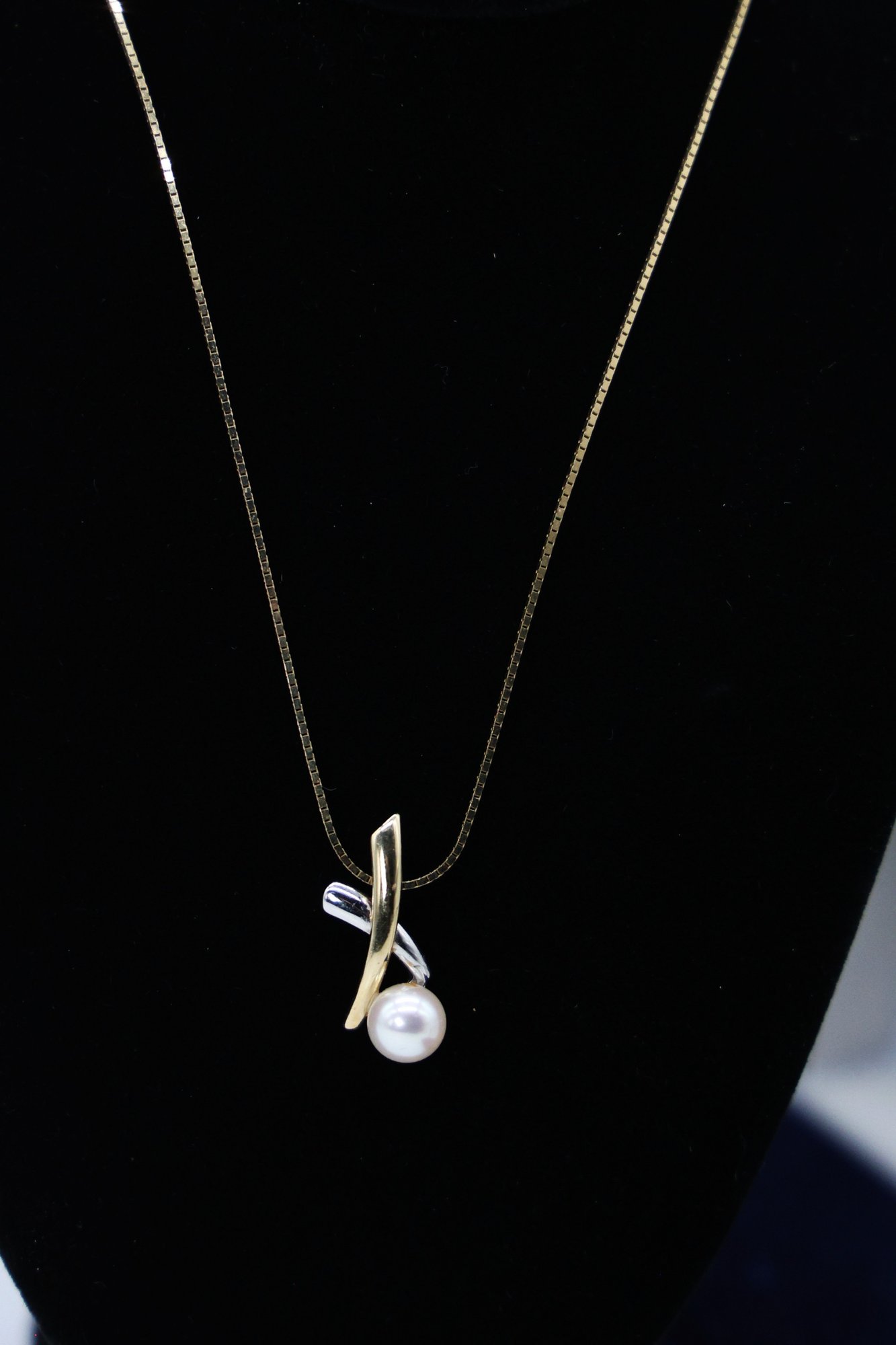 This beautiful 16" L pearl necklace is the perfect gift. Ready to go in a black box with 14K gold and an X holding an O as a pearl! So clever. Approx. 4.6 grams TW.