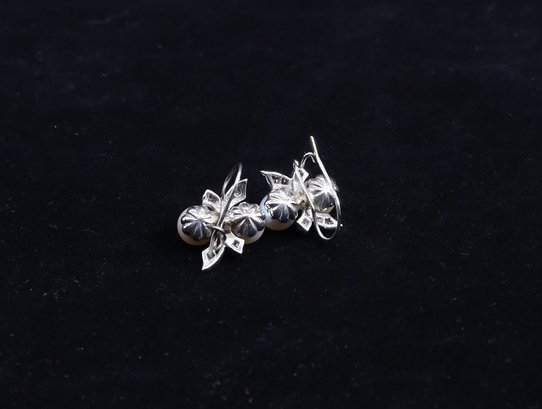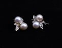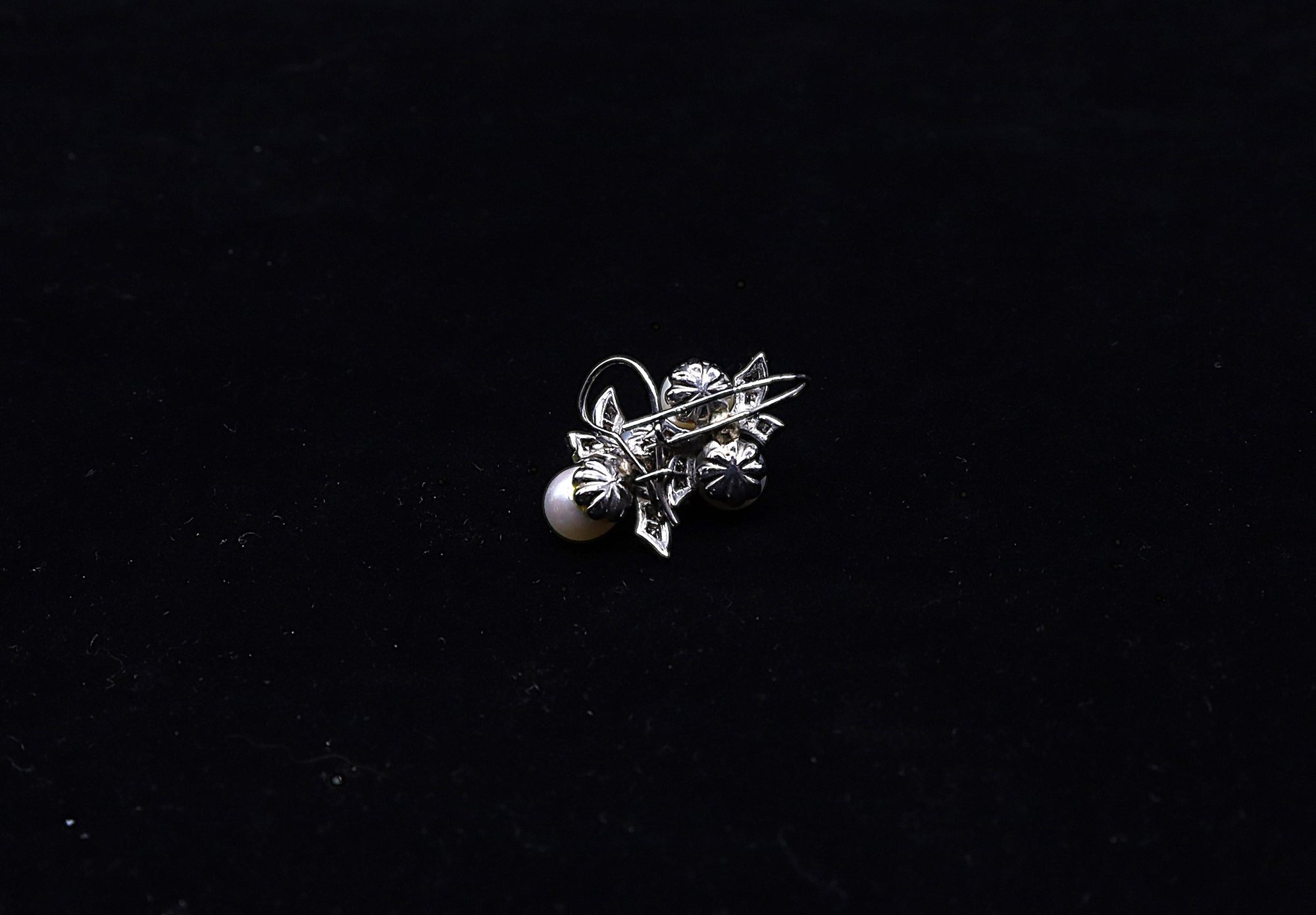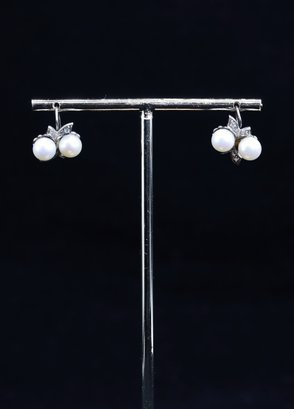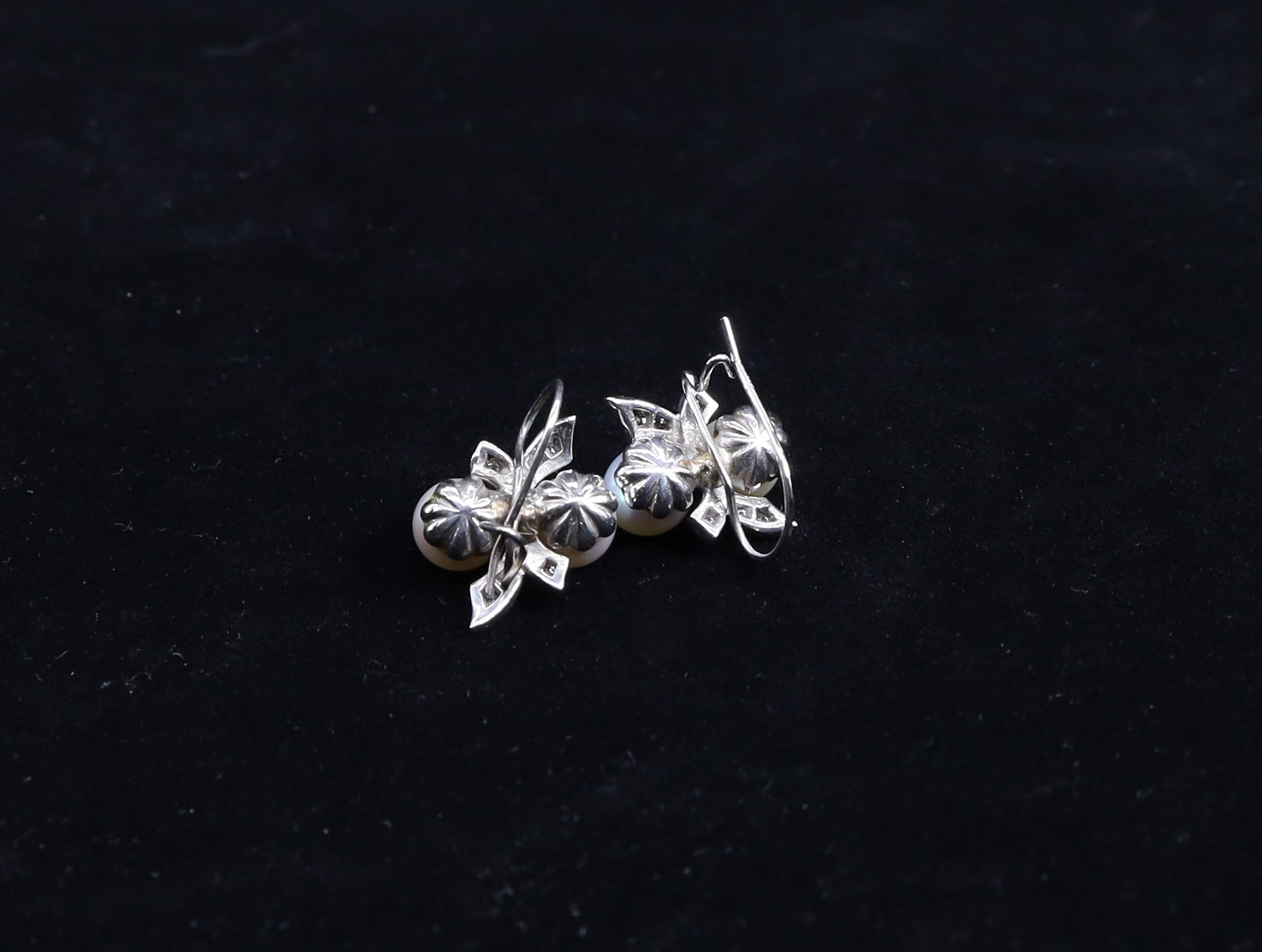 14k with 6 natural diamonds approx. .05ct with and 2 cultured pearls each. with wire backing.