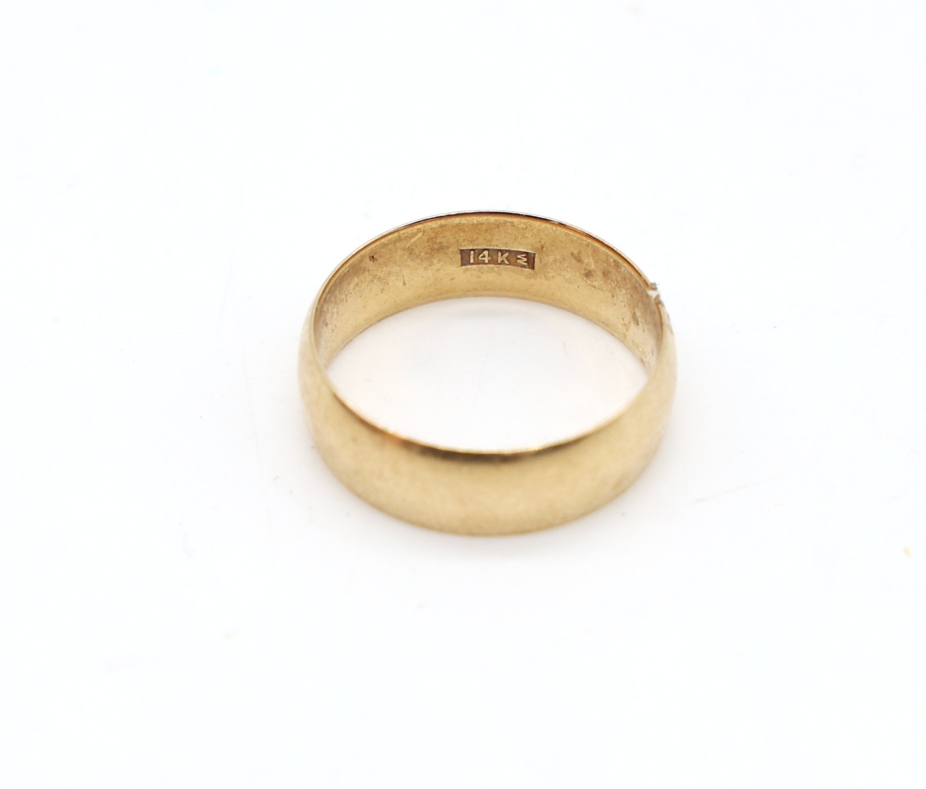 14K yellow gold wedding band, size 10, approximately 5.5 grams.