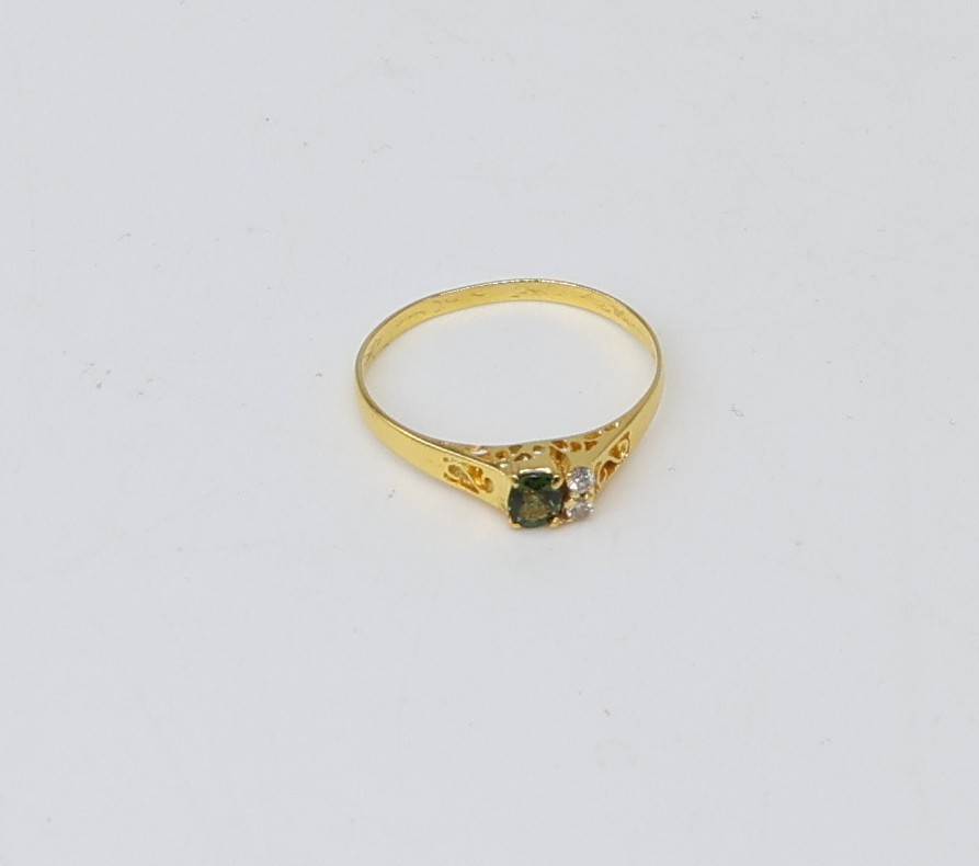 Two diamonds at .05ct.each with Peridot stone