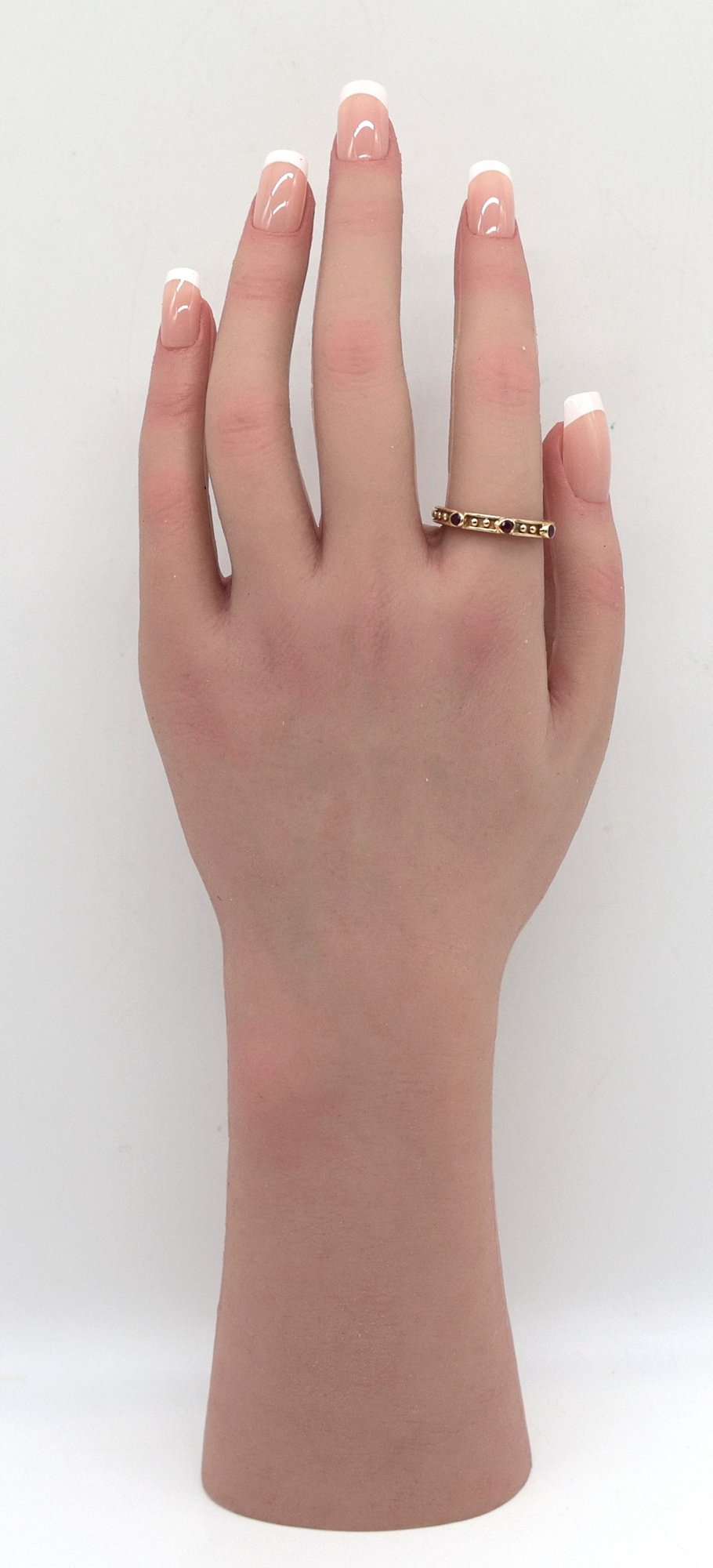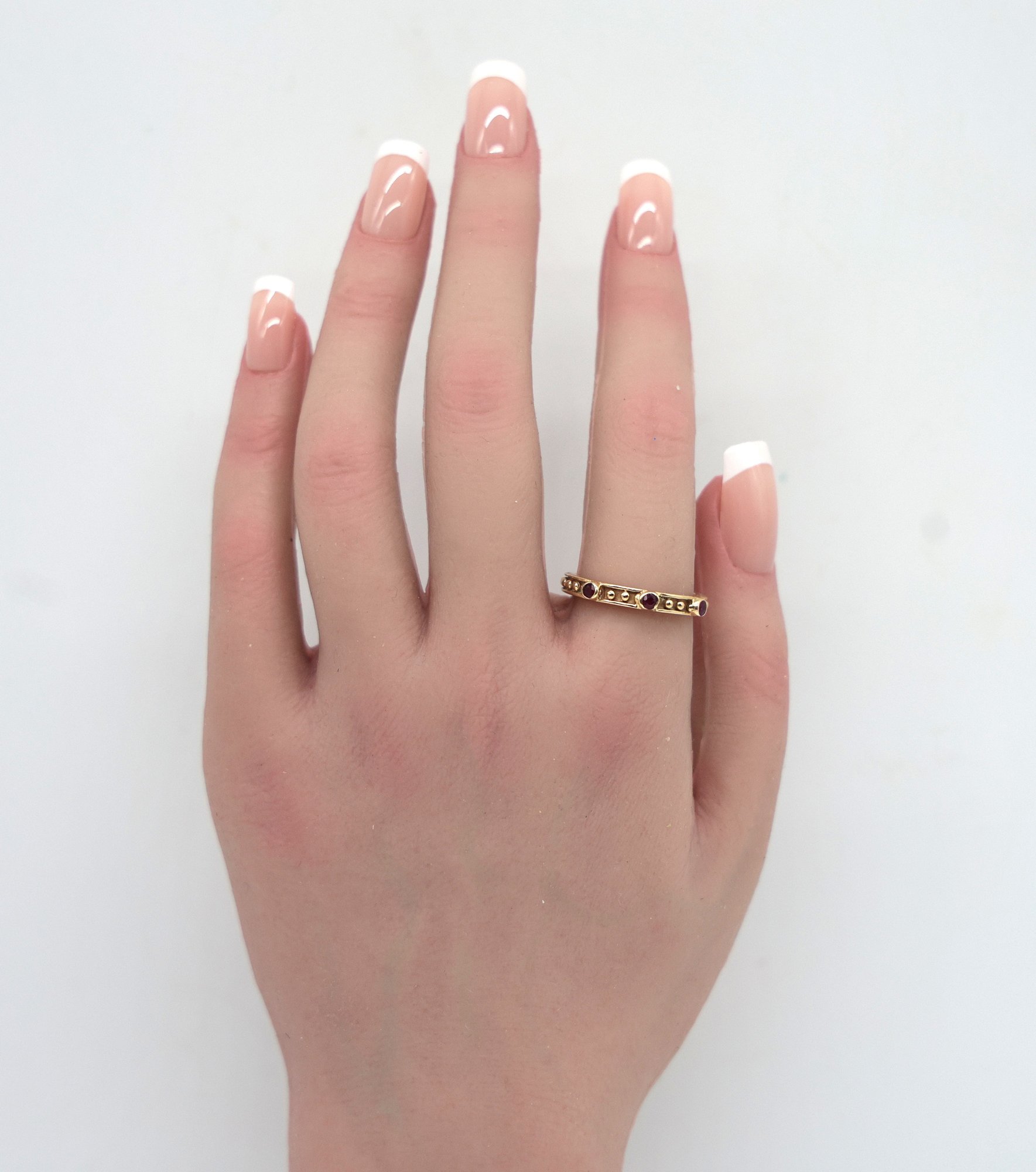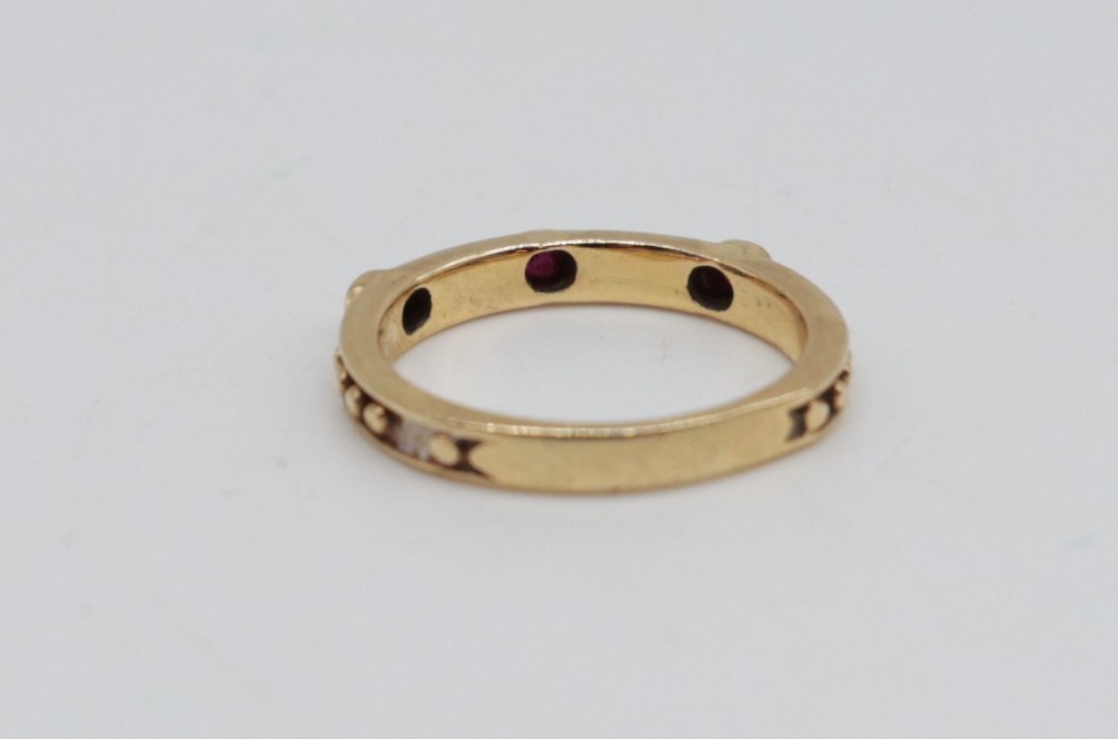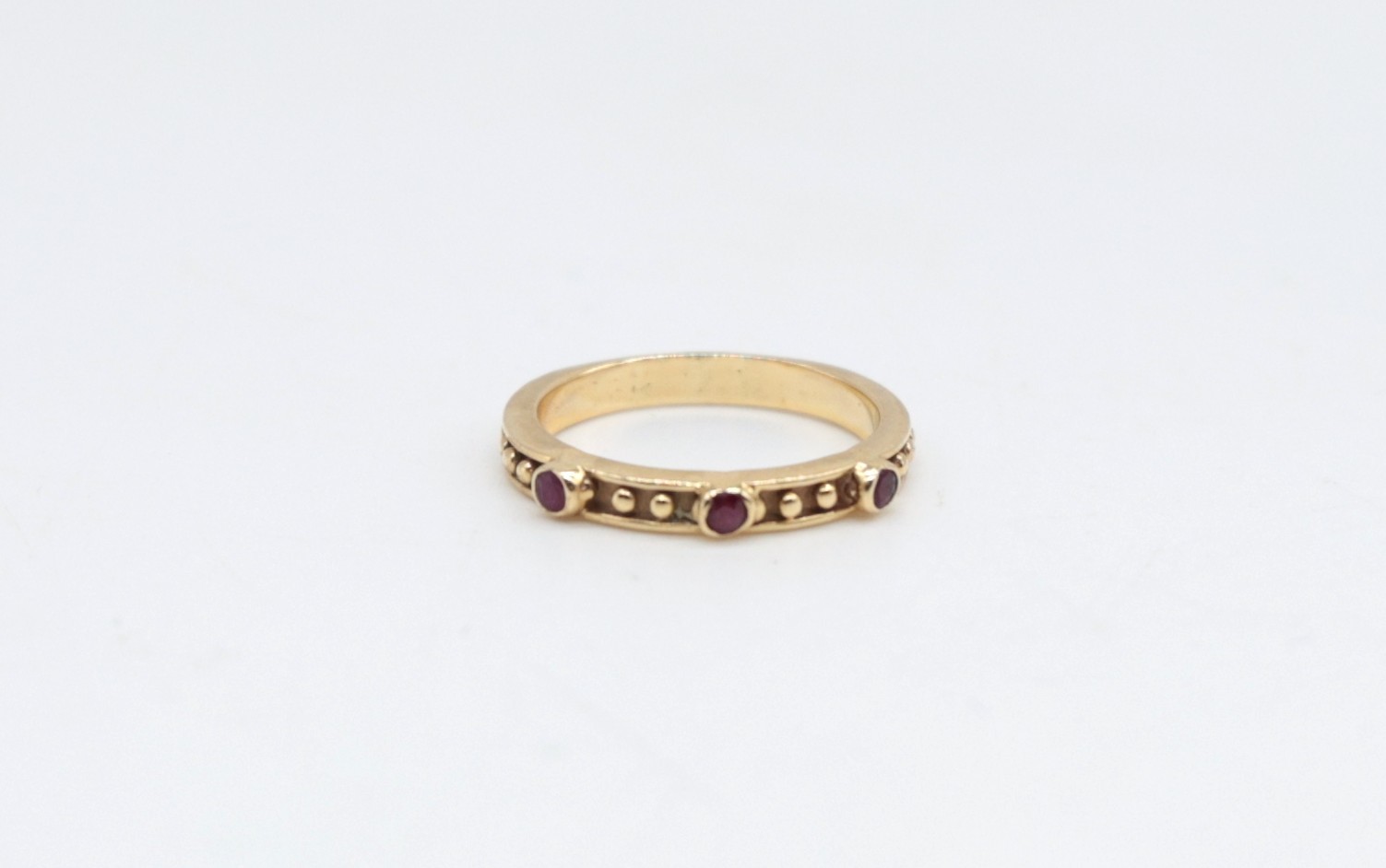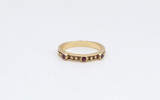 18kt Yellow Gold Eternity Band with 3 rubies. Size 9