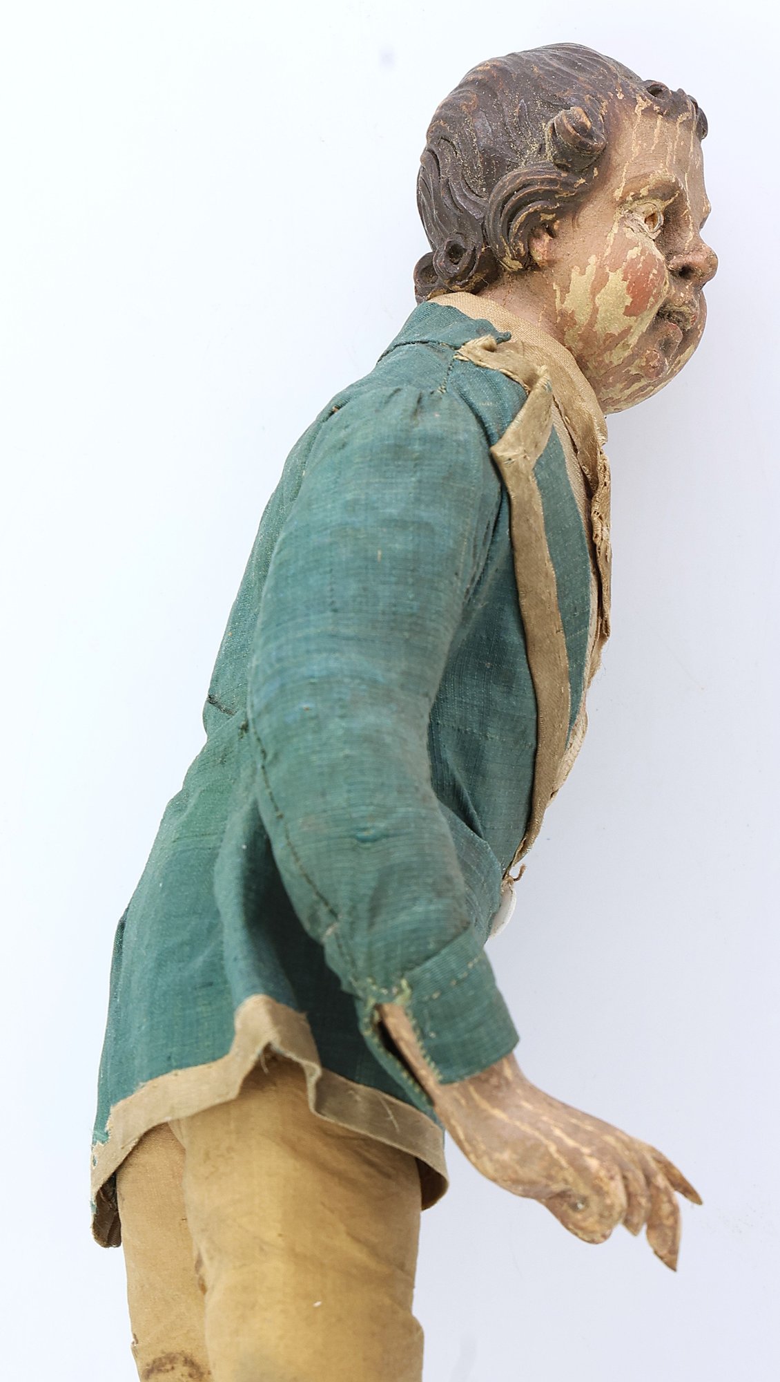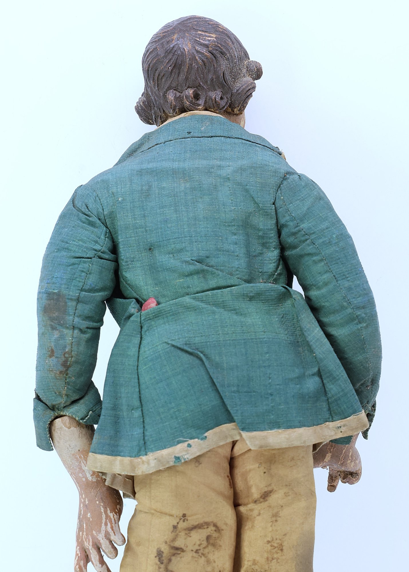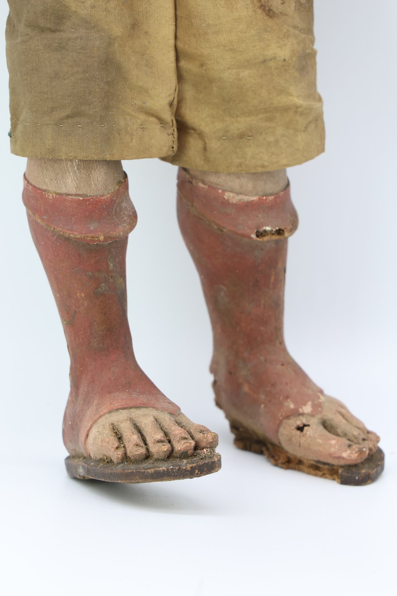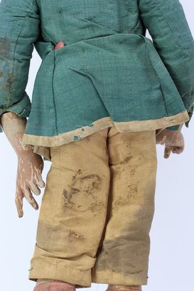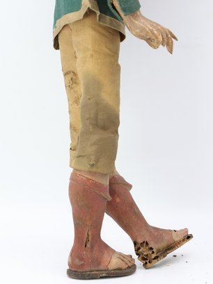 Gentleman of the period with details to original clothing and sandals. One leg needs repair ,fingers are missing and one eye is missing