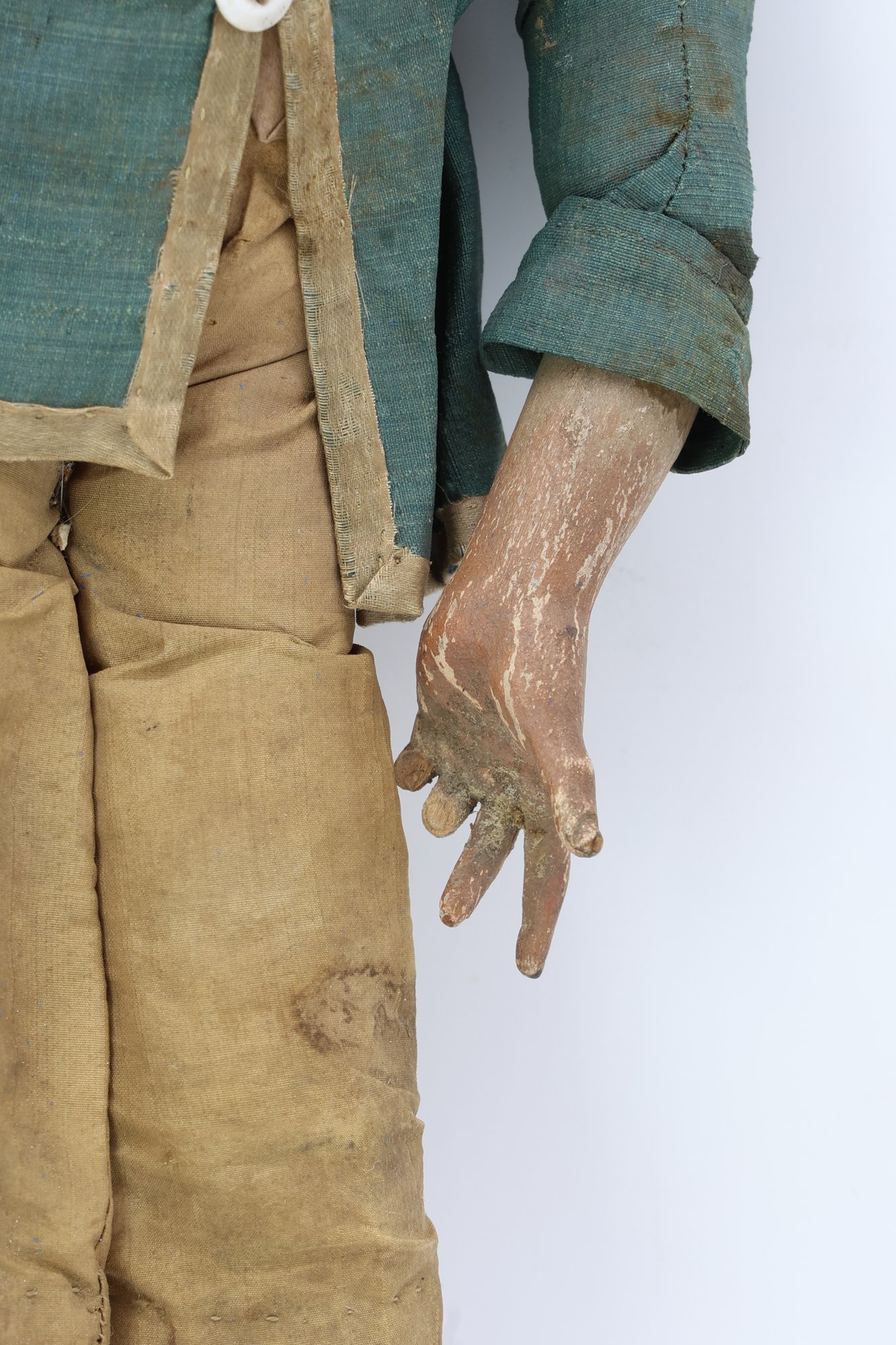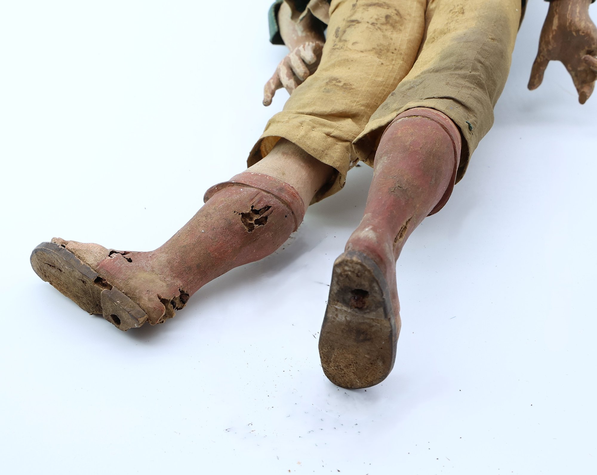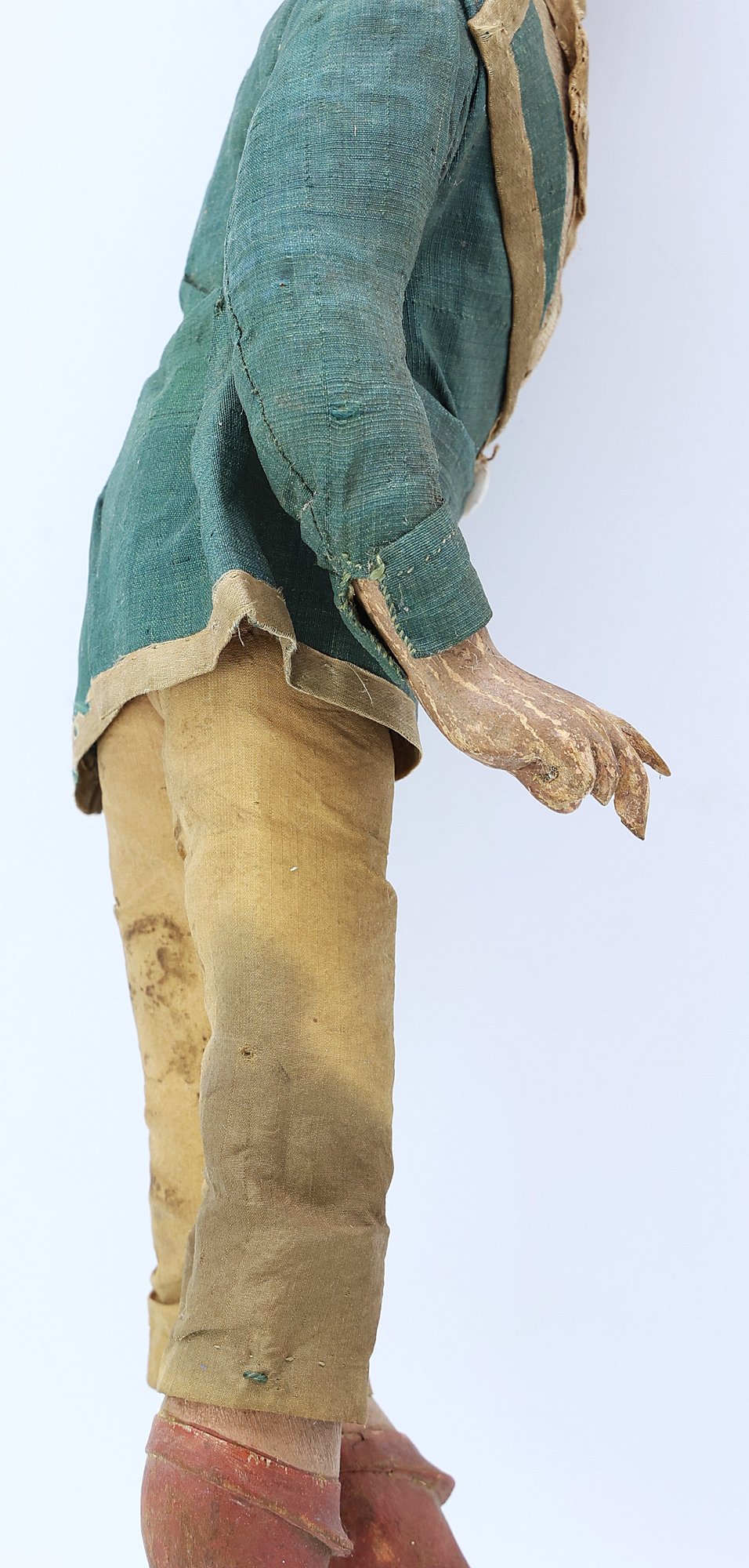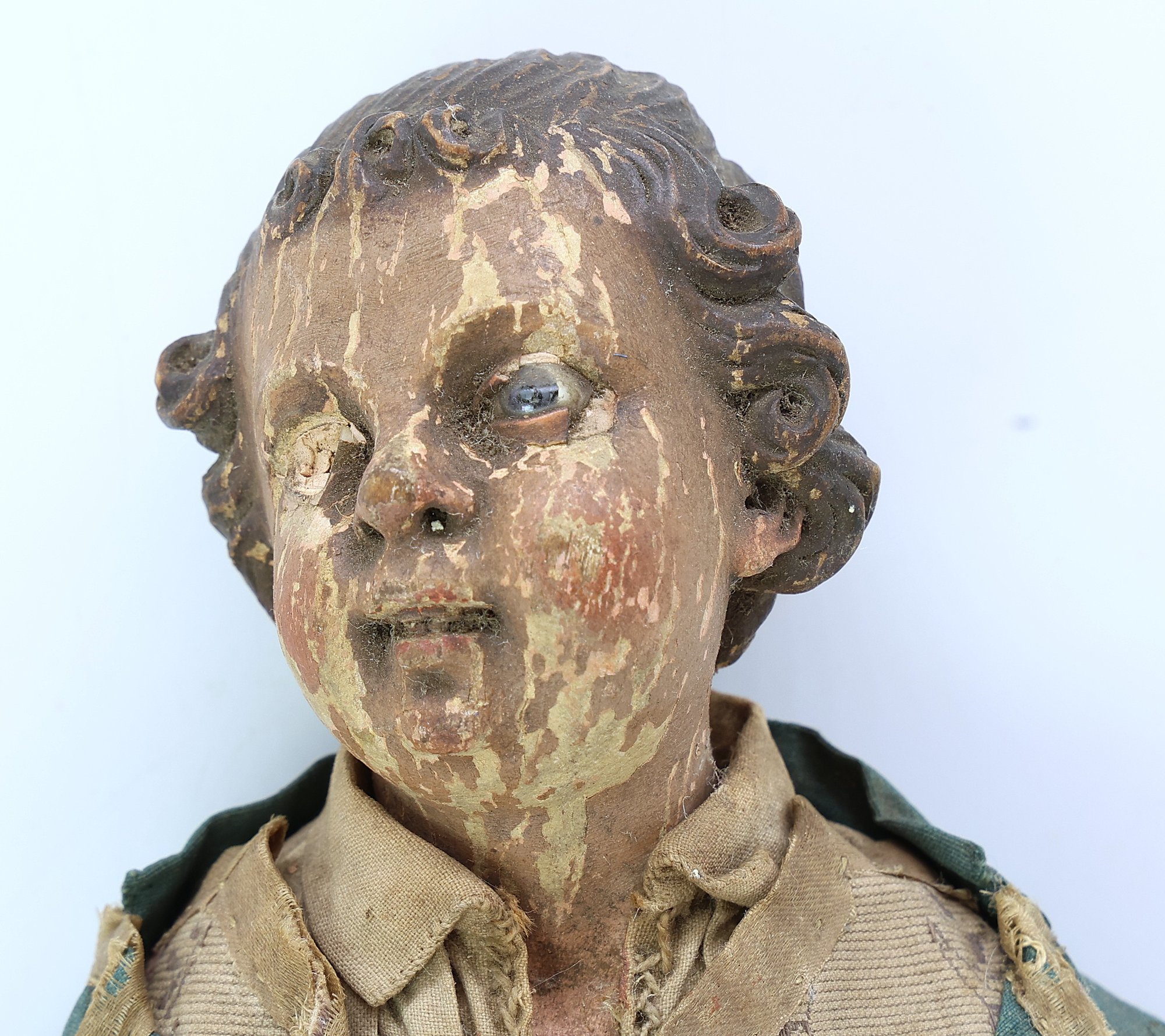Gentleman of the period with details to original clothing and sandals. One leg needs repair ,fingers are missing and one eye is missing