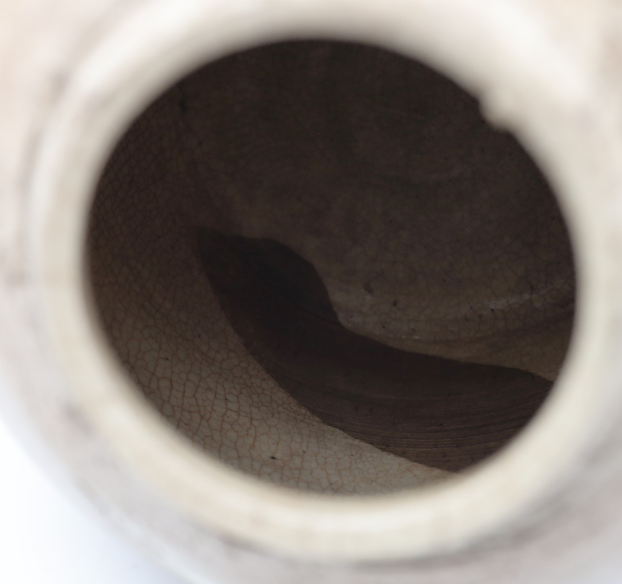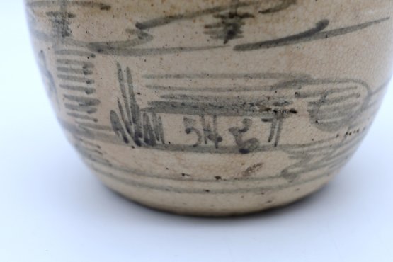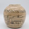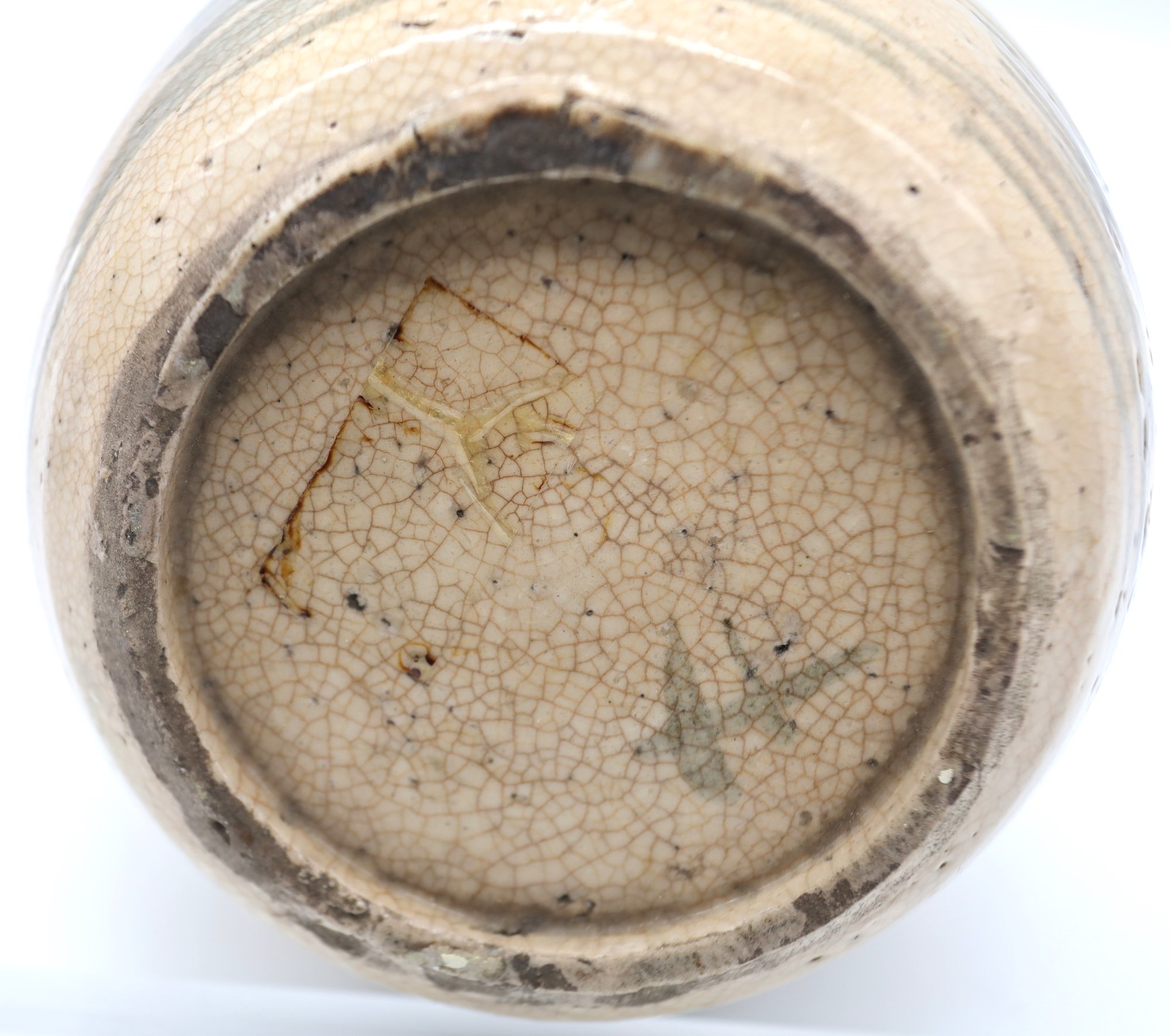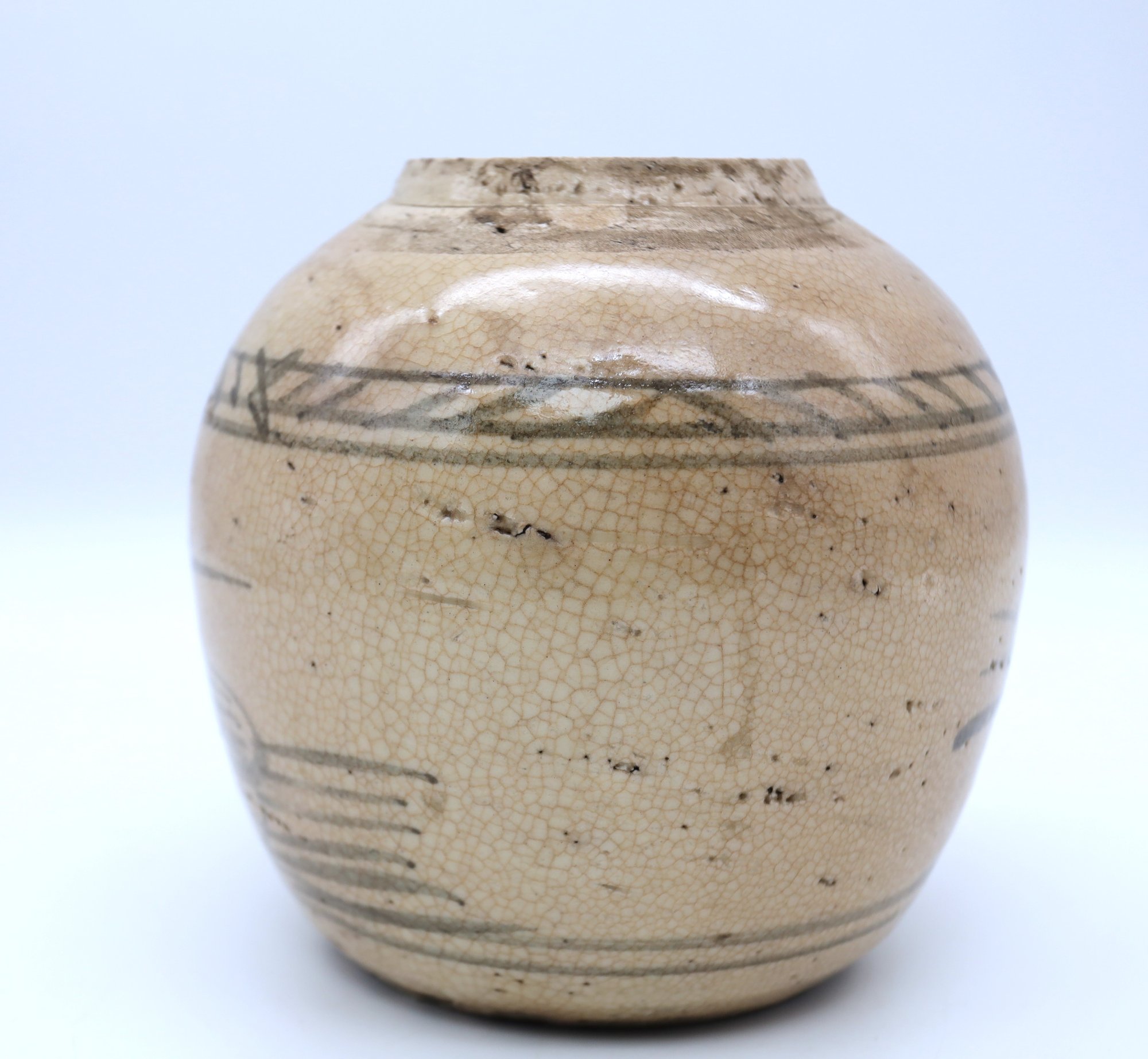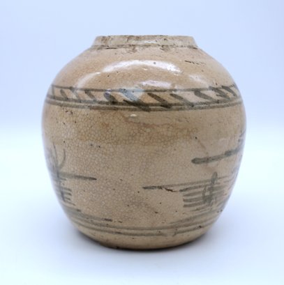 18th Century Chinese Earthenware Ginger Jar of bulbous form. Nicely decorated with crackle glaze all around. old chip on base. Cream color with black