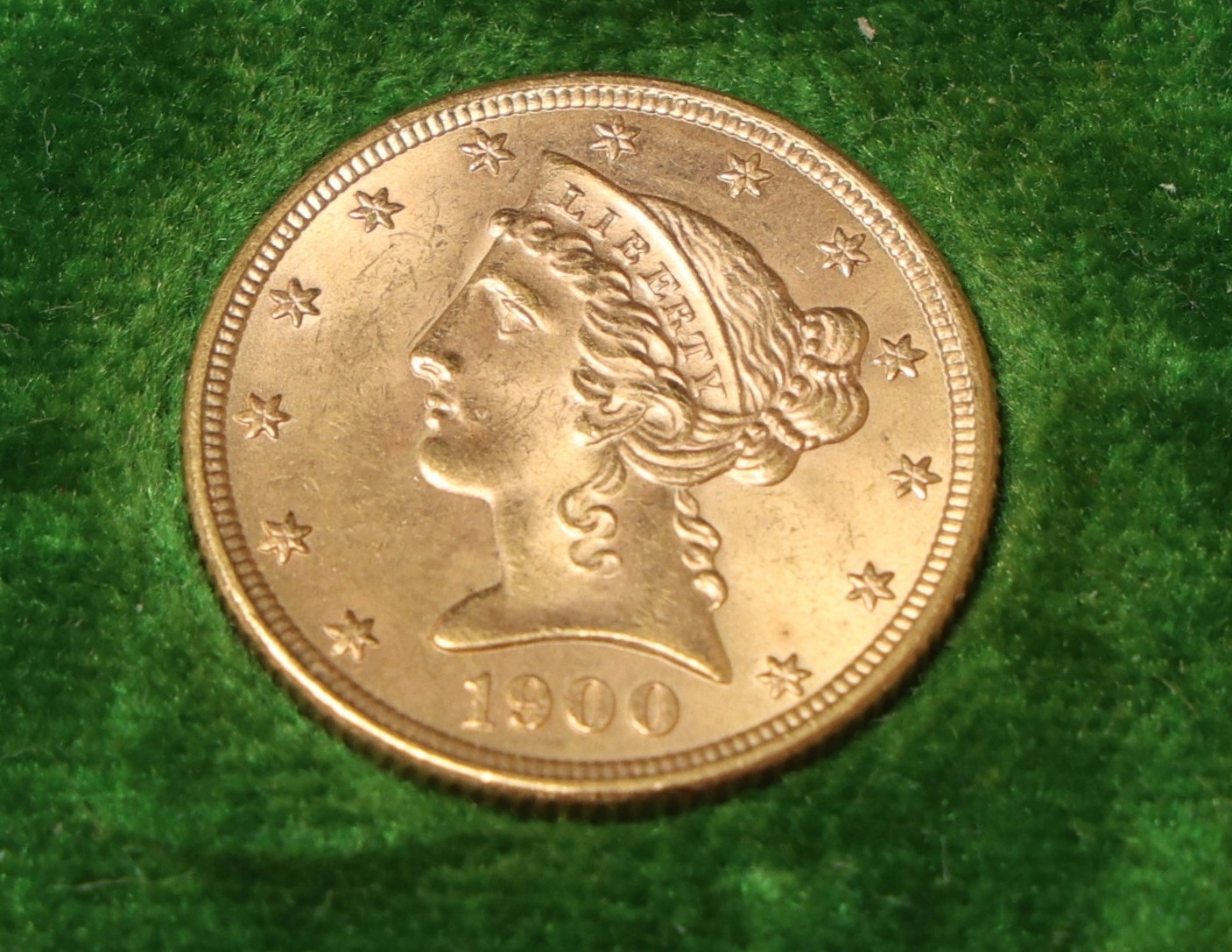 Obverse: Lady Liberty with the word "LIBERTY" on her coronet, surrounded by 13 stars and the year 1900.