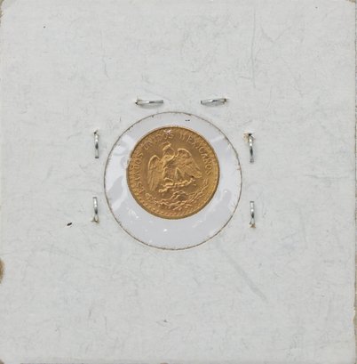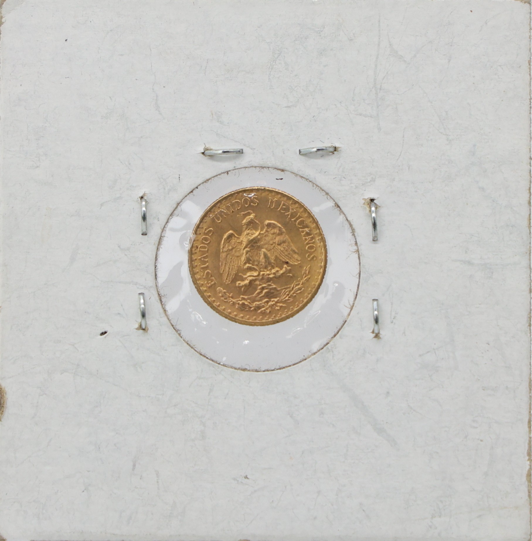 The obverse features the Mexican coat of arms, a golden eagle perched on a prickly-pear cactus while devouring a snake.