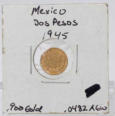 The denomination "DOS PESOS" is inscribed in the center of an open laurel wreath, with the date "1945" at the top.