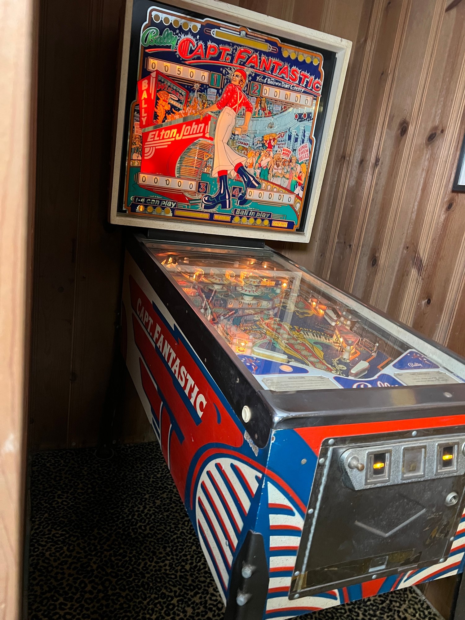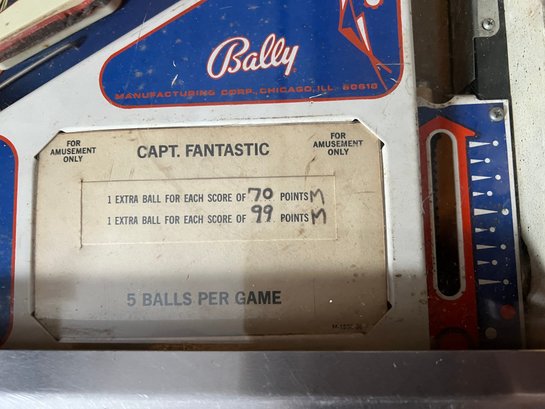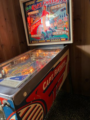 The machine features artwork inspired by the movie Tommy, prominently depicting Elton John as Captain Fantastic. It is considered a highly collectible "monster hit" of its era, known for its drop targets, extra balls, and a countdown bonus. It supports 1-4 players.