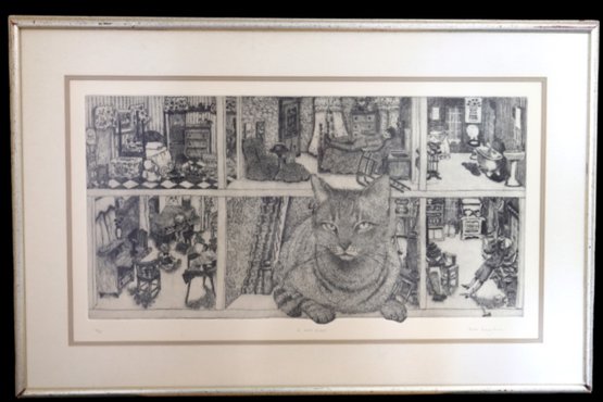 1977 Nancy Reinke (B.1931-2009) Lithograph "A Cat's Place"- pencil Signed and numbered
