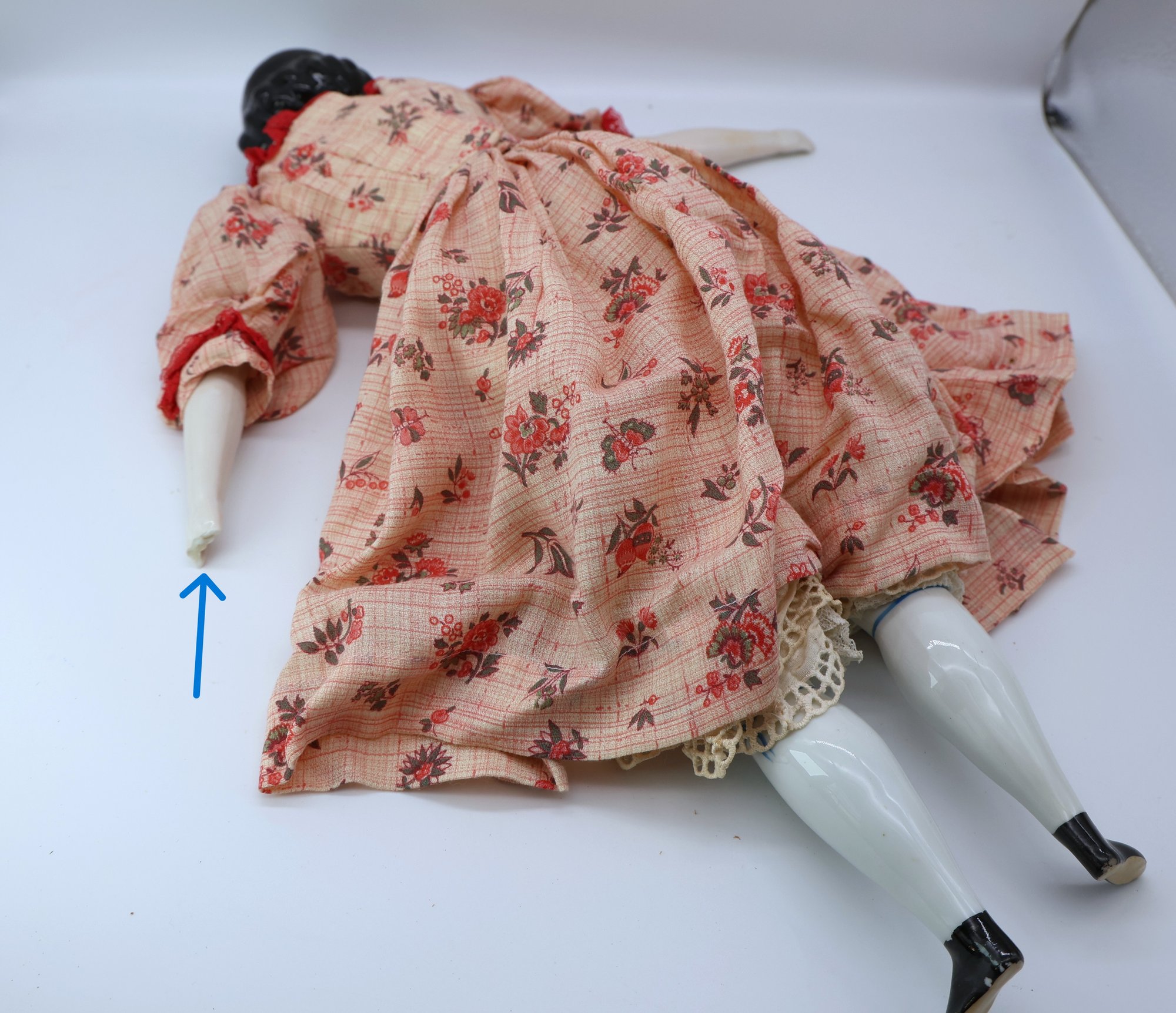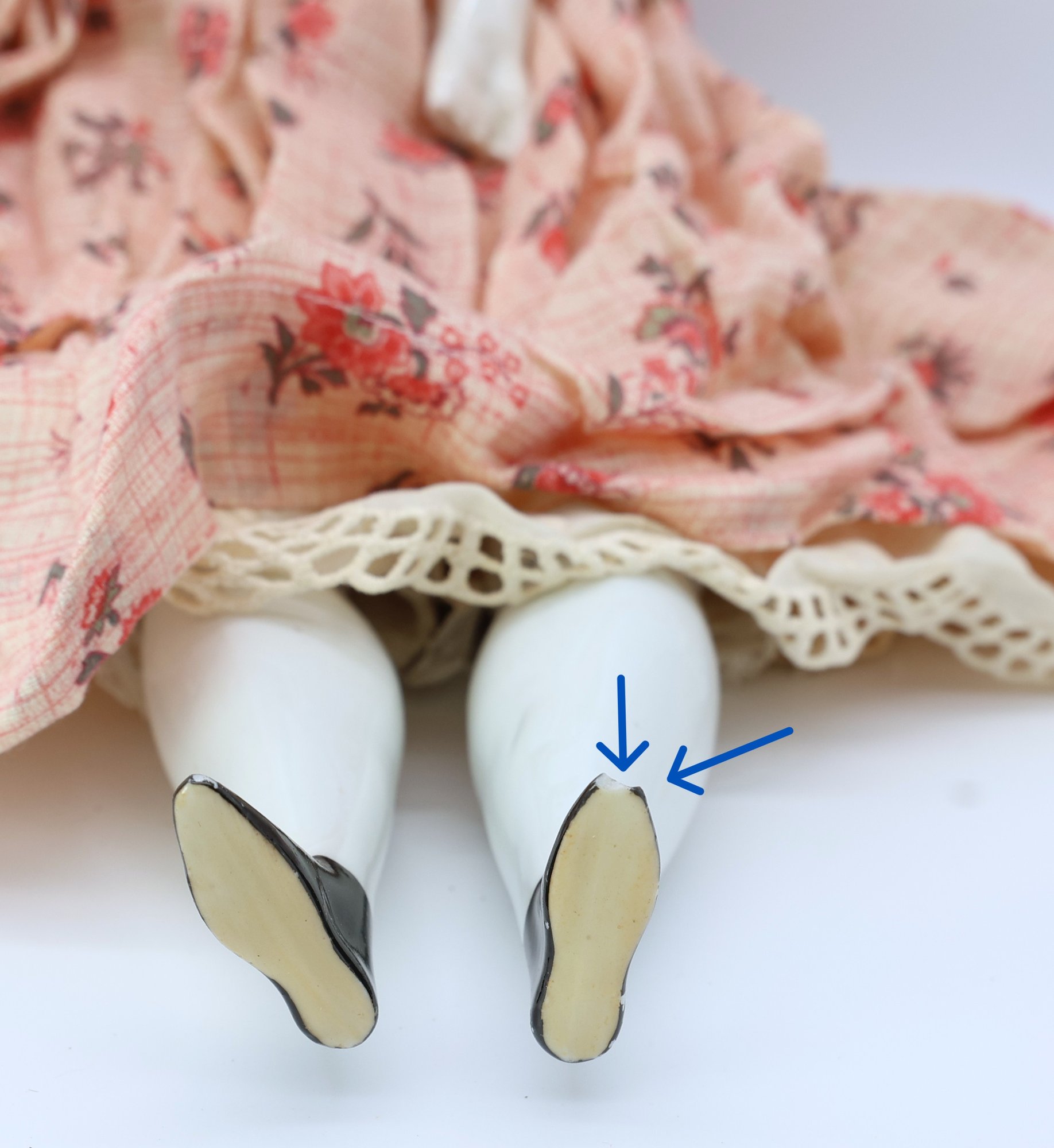 wear to feet and one broken hand