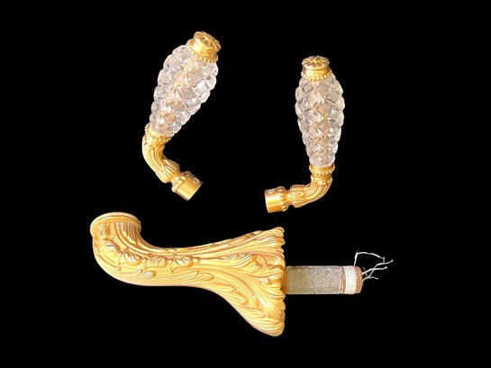 22k gold plated faucet 6"L, heavy duty!! 18"L towel holder, ends for shelf, pair of crystal handles 5"L