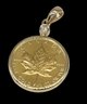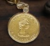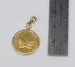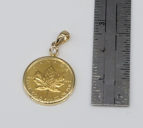 The coin is encased in a 14K gold bezel. This pendant also features a small diamond set into the bail (the loop that attaches to a chain).