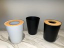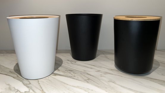 Waste baskets are made of steel with matte black and white, 2 with removable Paulownia wood lids.