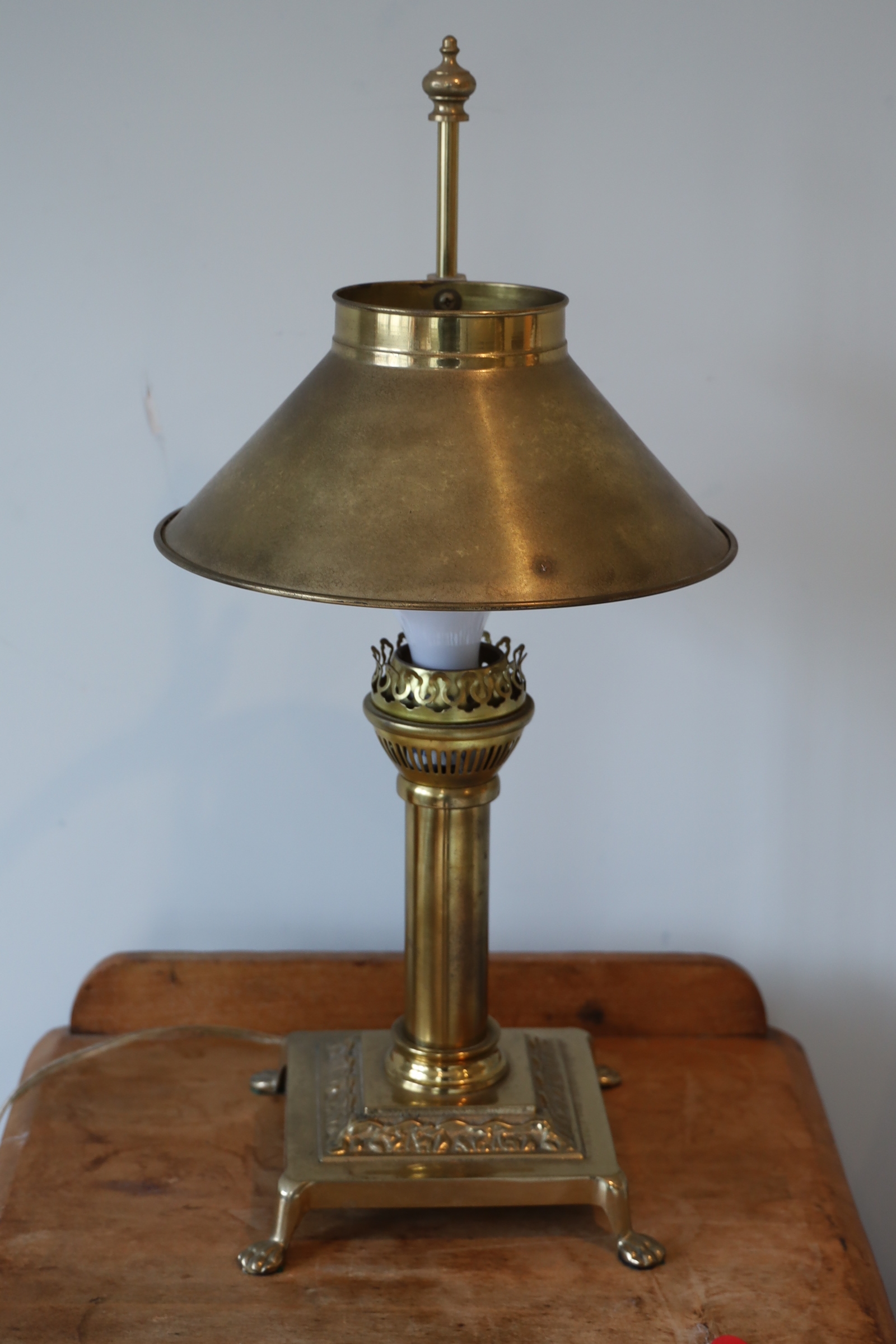 This brass touch lamp has a 3-way dimmer and 4 feet. Shipping available.