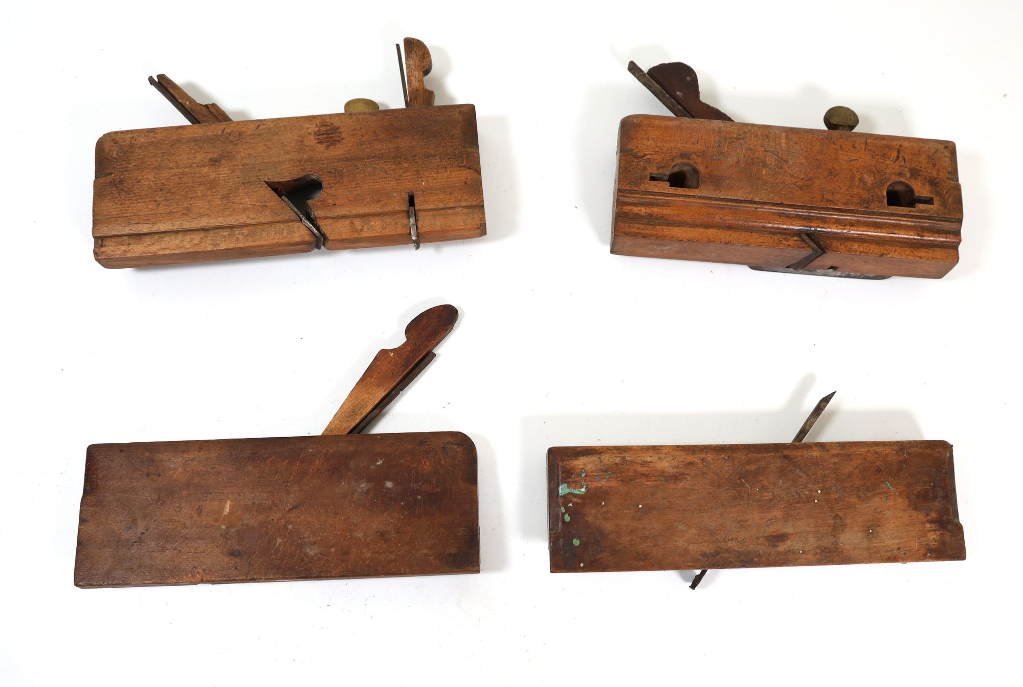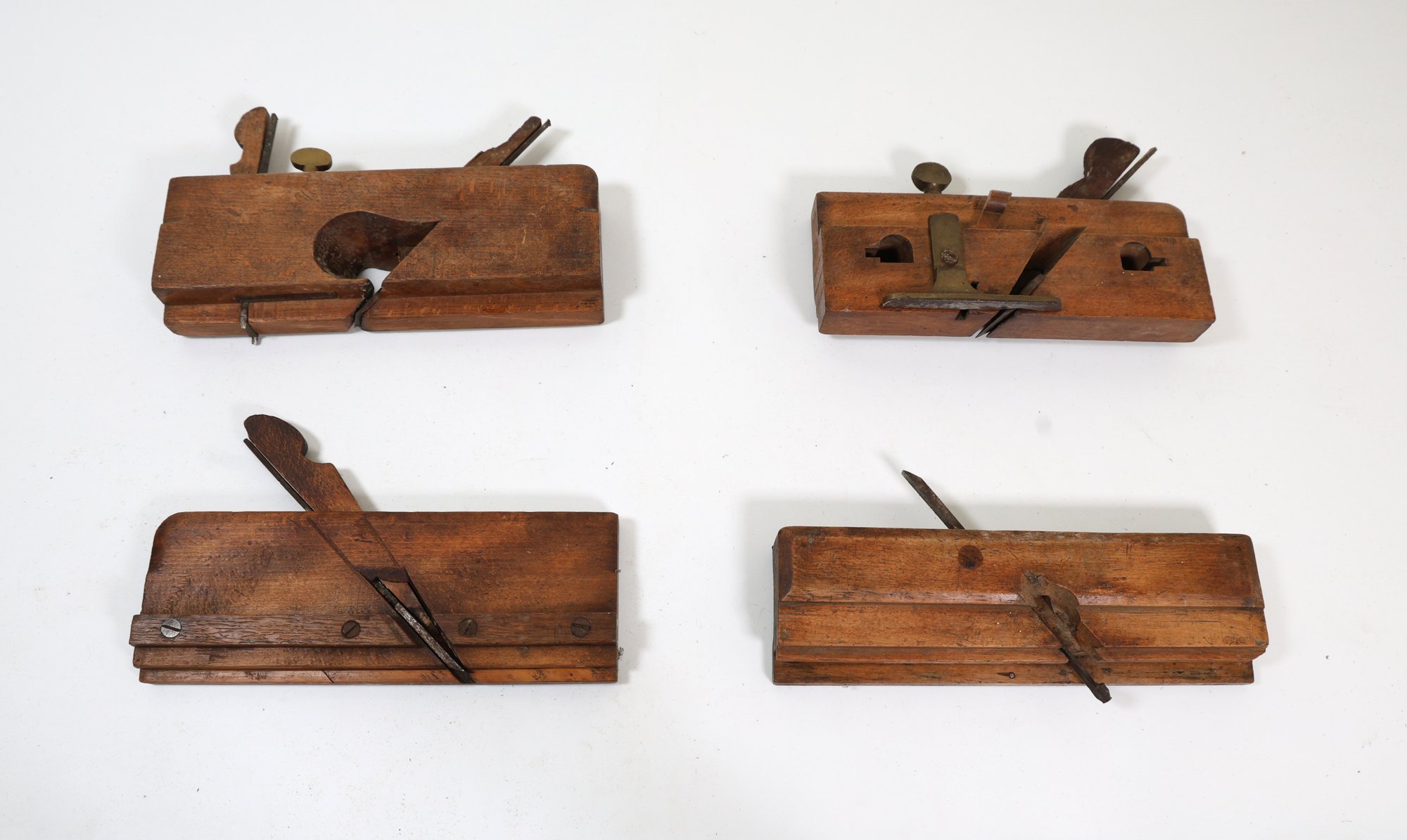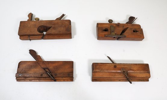 4 antique wood hand planes for wood working to shape , smooth and flatten wood surfaces