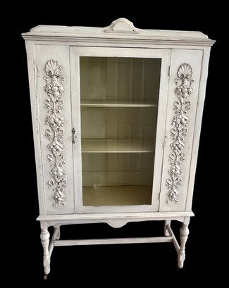 2 shelves, on wheels, and 1 glass door