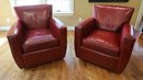 Pair of leather Crate and Barrel Streeter swivel chairs RED!! Nice accent in any room.