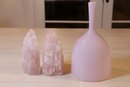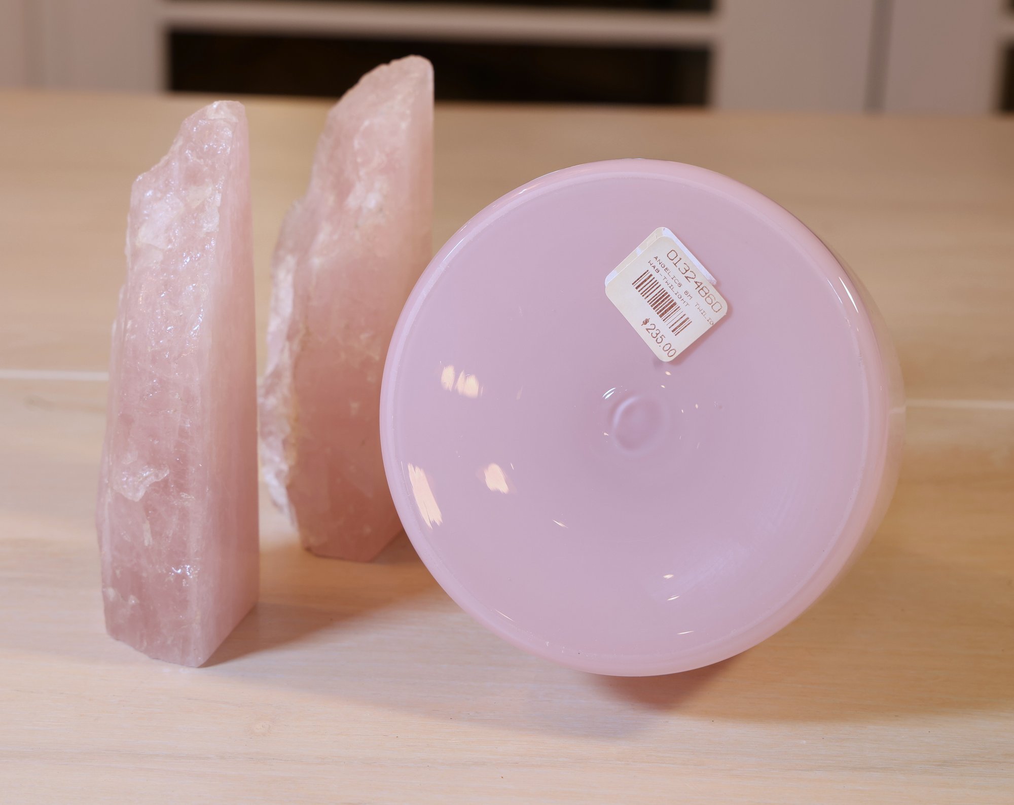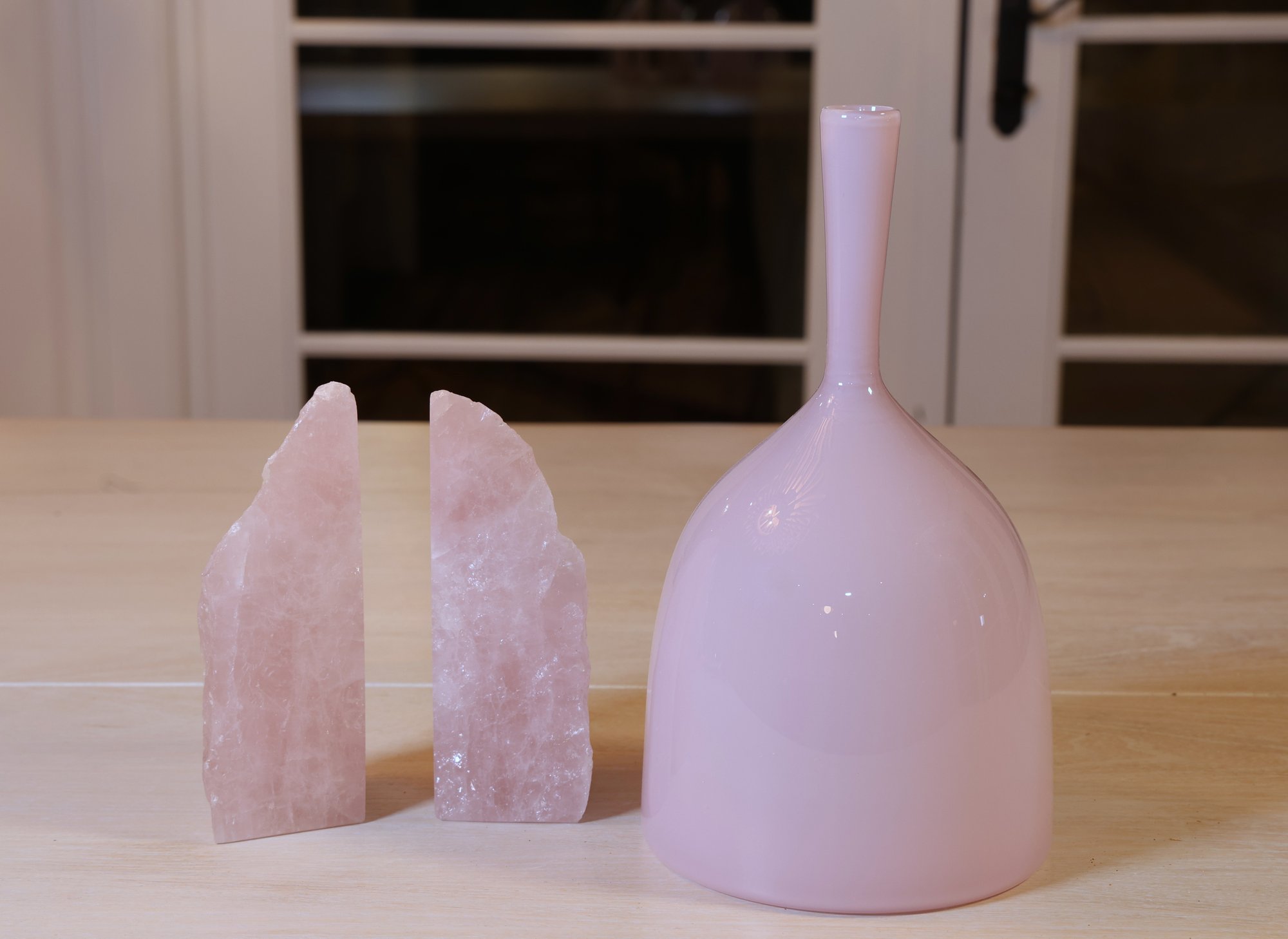 Rose quartz bookends 6.5"H with a smooth side and natural