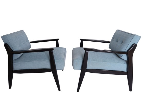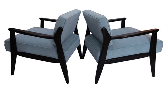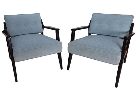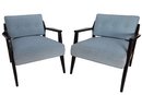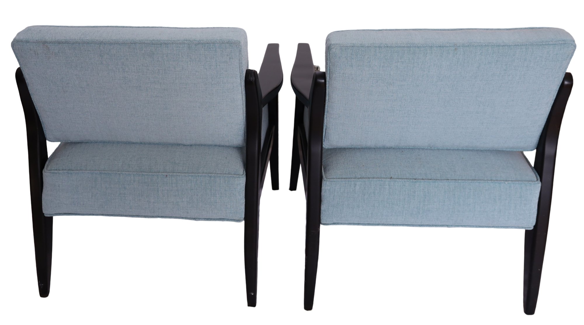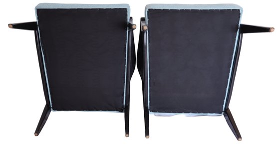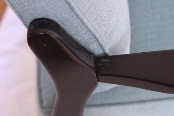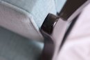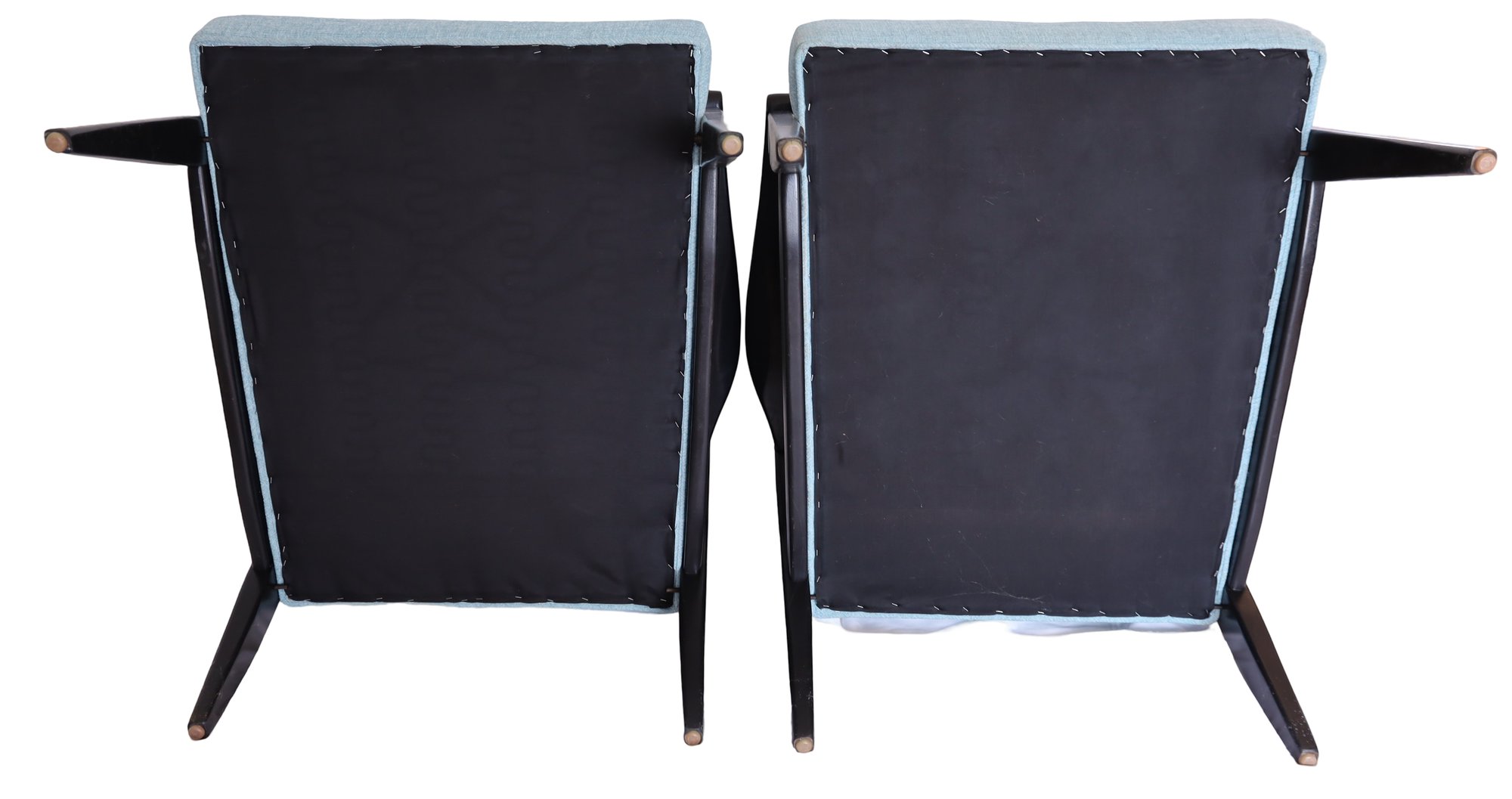 Z. Baczyk, unsigned from the 1970s. Crafted from ebony wood with turquoise upholstery, this piece is exceptionally comfortable and appealing! Dimensions: 27.5" W x 28" H back, 19" seat height, and 28" D.
