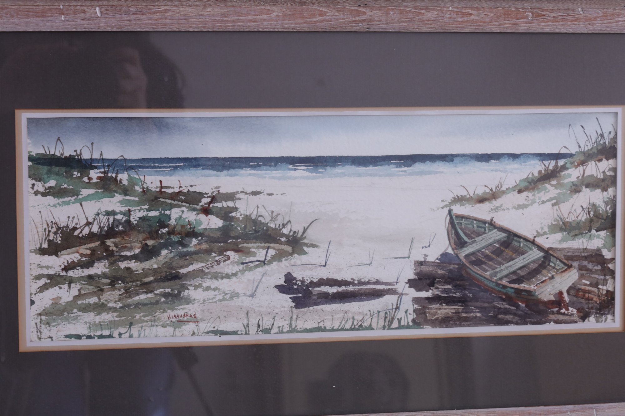 American artist Rolandas Vilkauskas' lighthouse and beach scenes from 1963 are beautifully framed.
