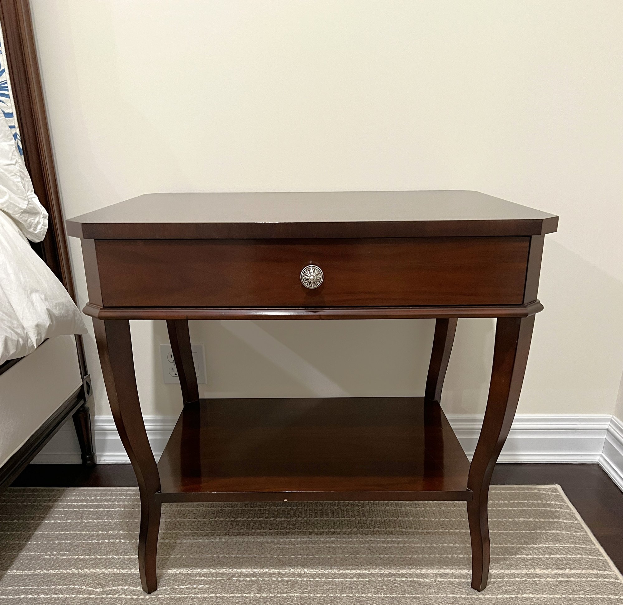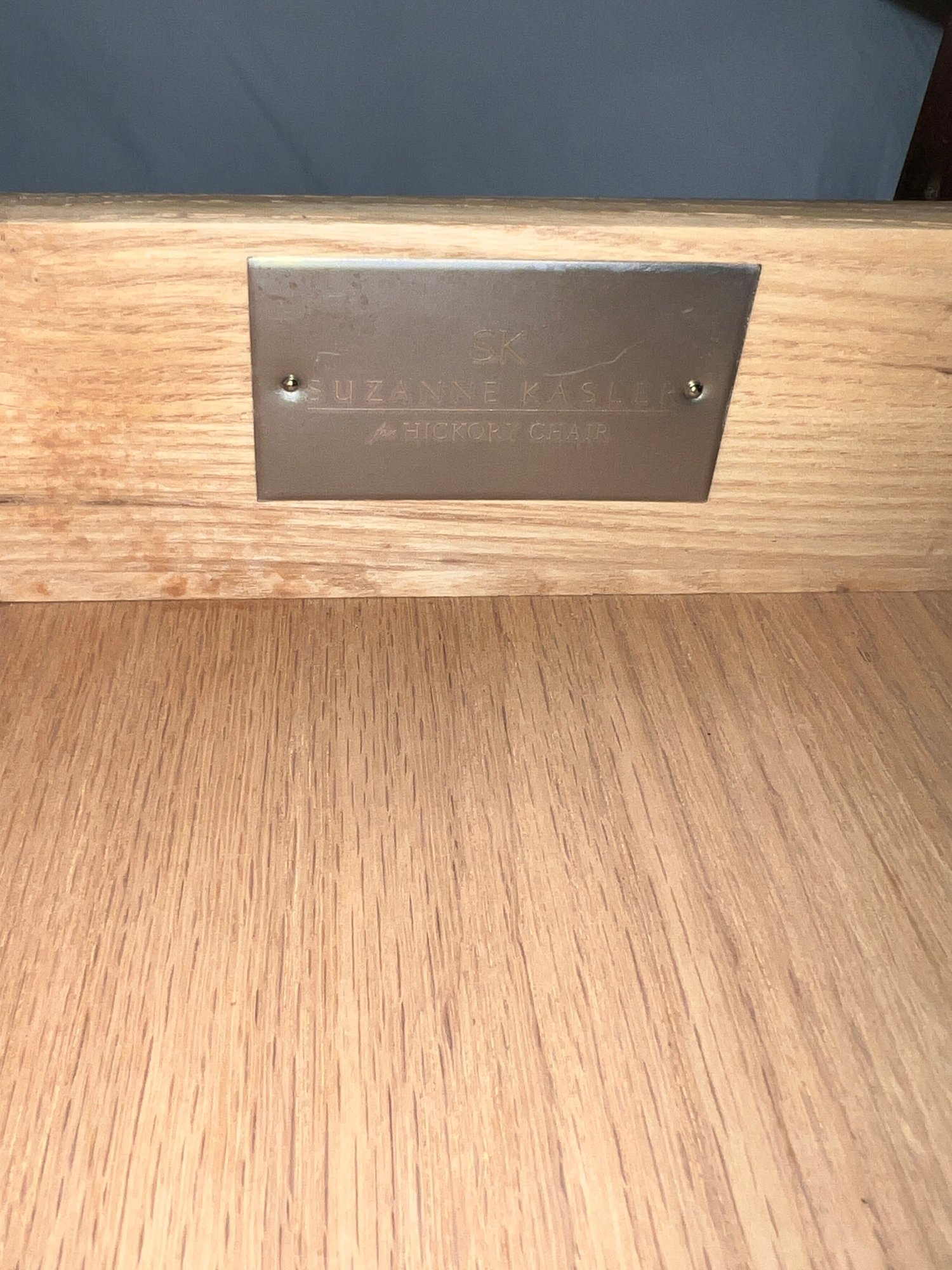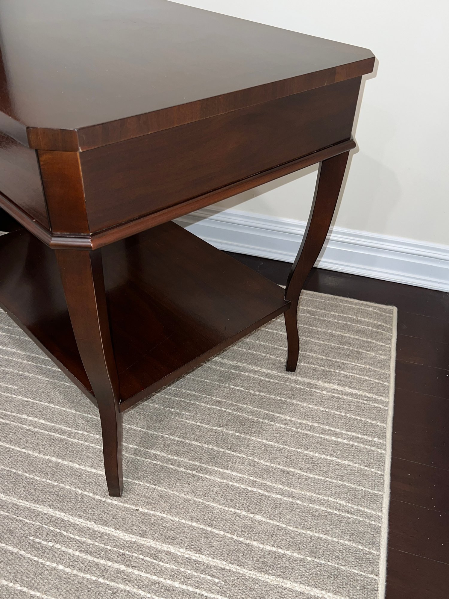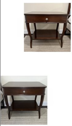 Pair Suzanne Kasler For Hickory Chair Table with dovetailing on the single drawer and polished nickel pull.