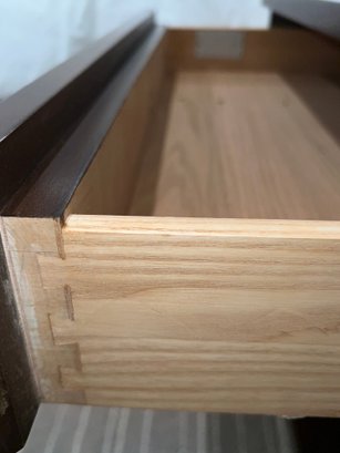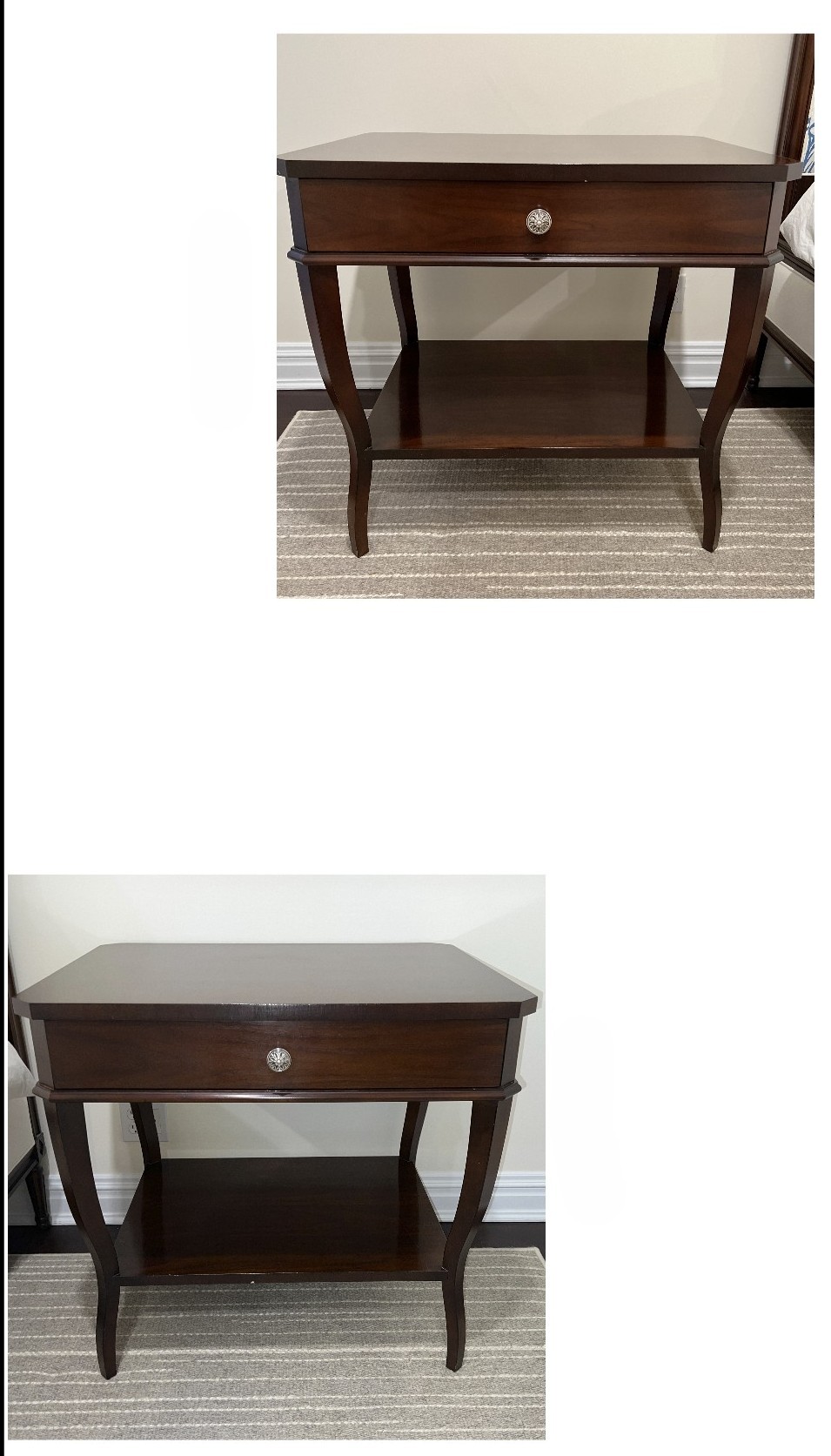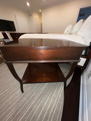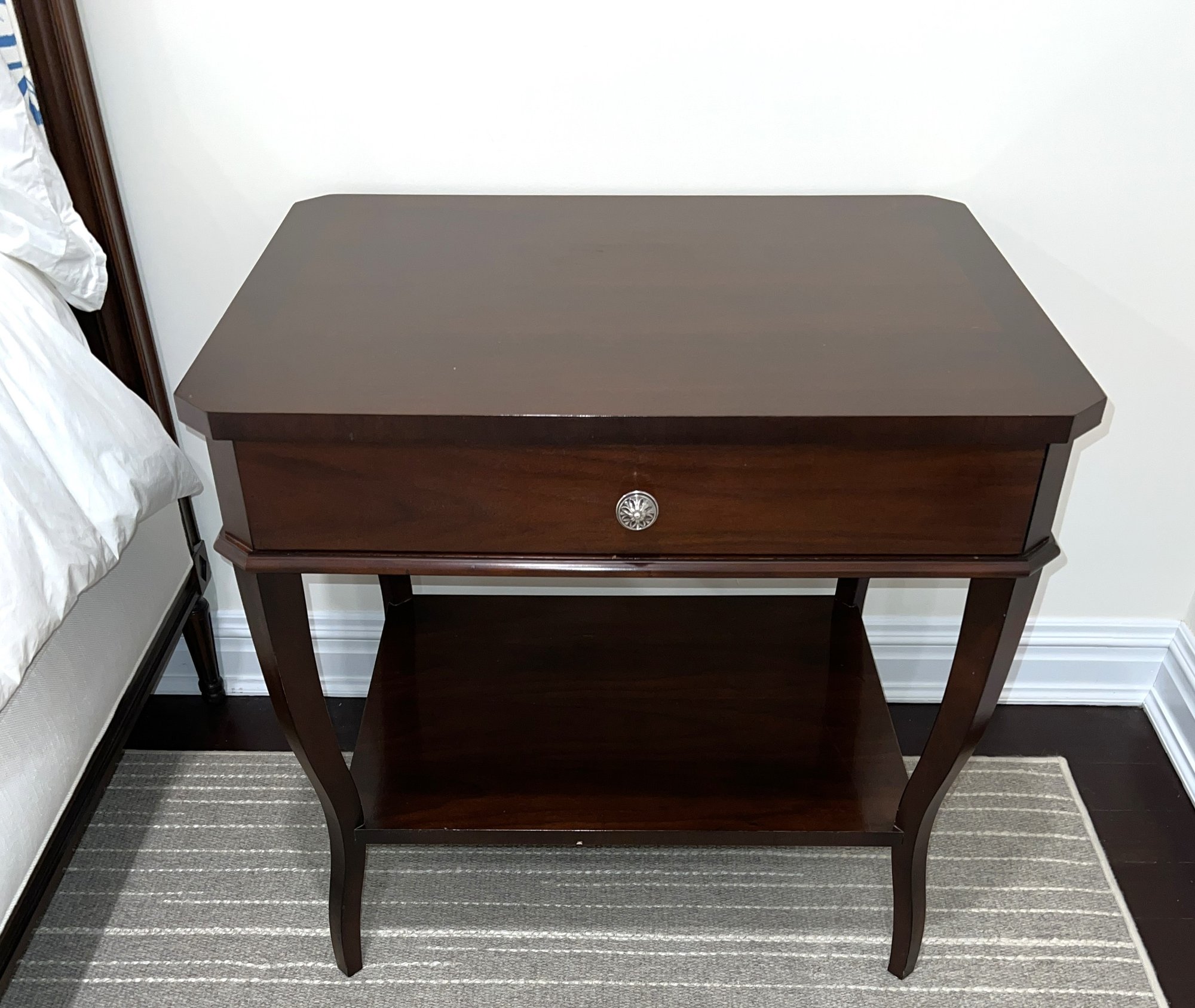 Pair Suzanne Kasler For Hickory Chair Table with dovetailing on the single drawer and polished nickel pull.