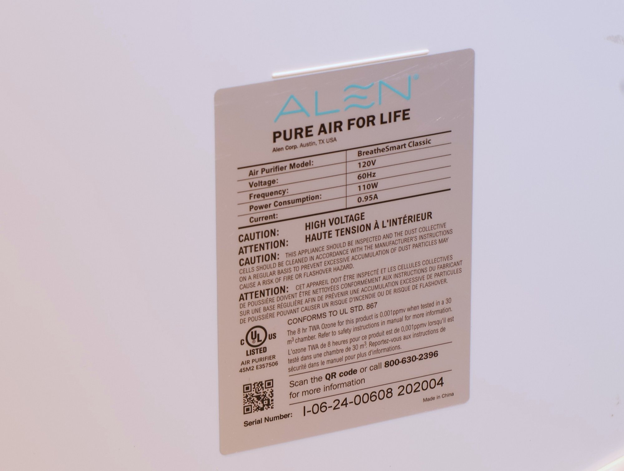 Alen air purifier /white/automatic shut off/ covers 1100 sq ft.