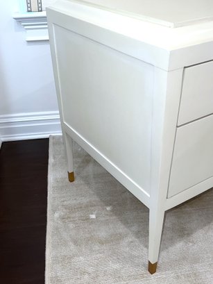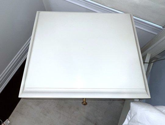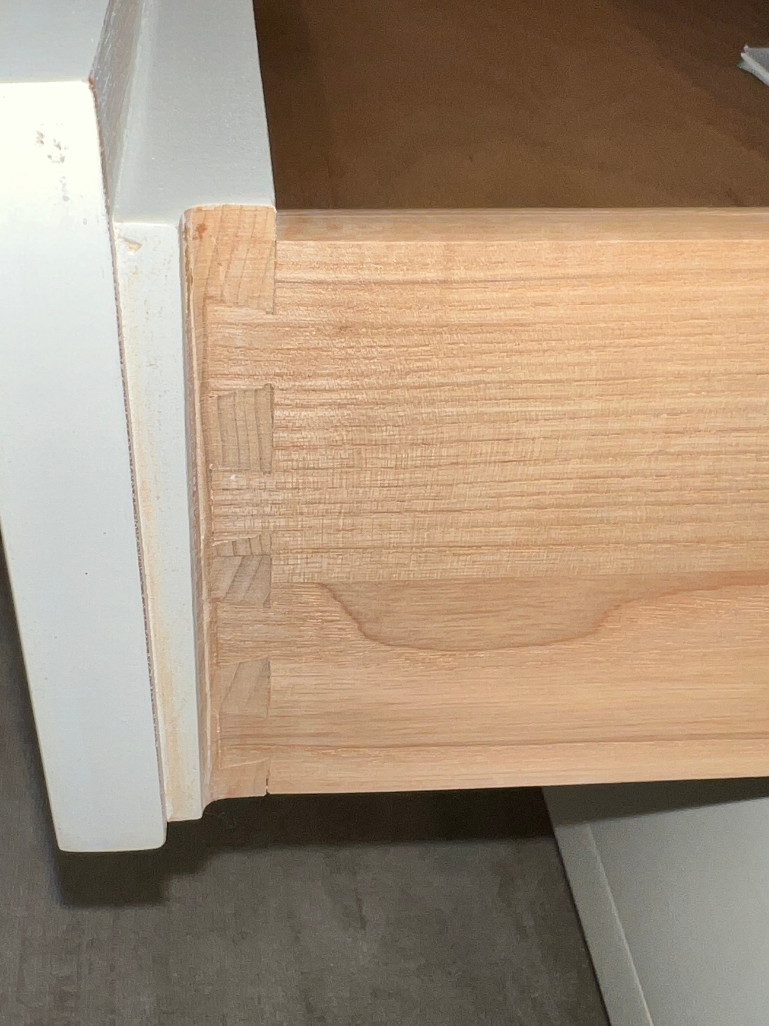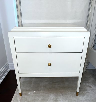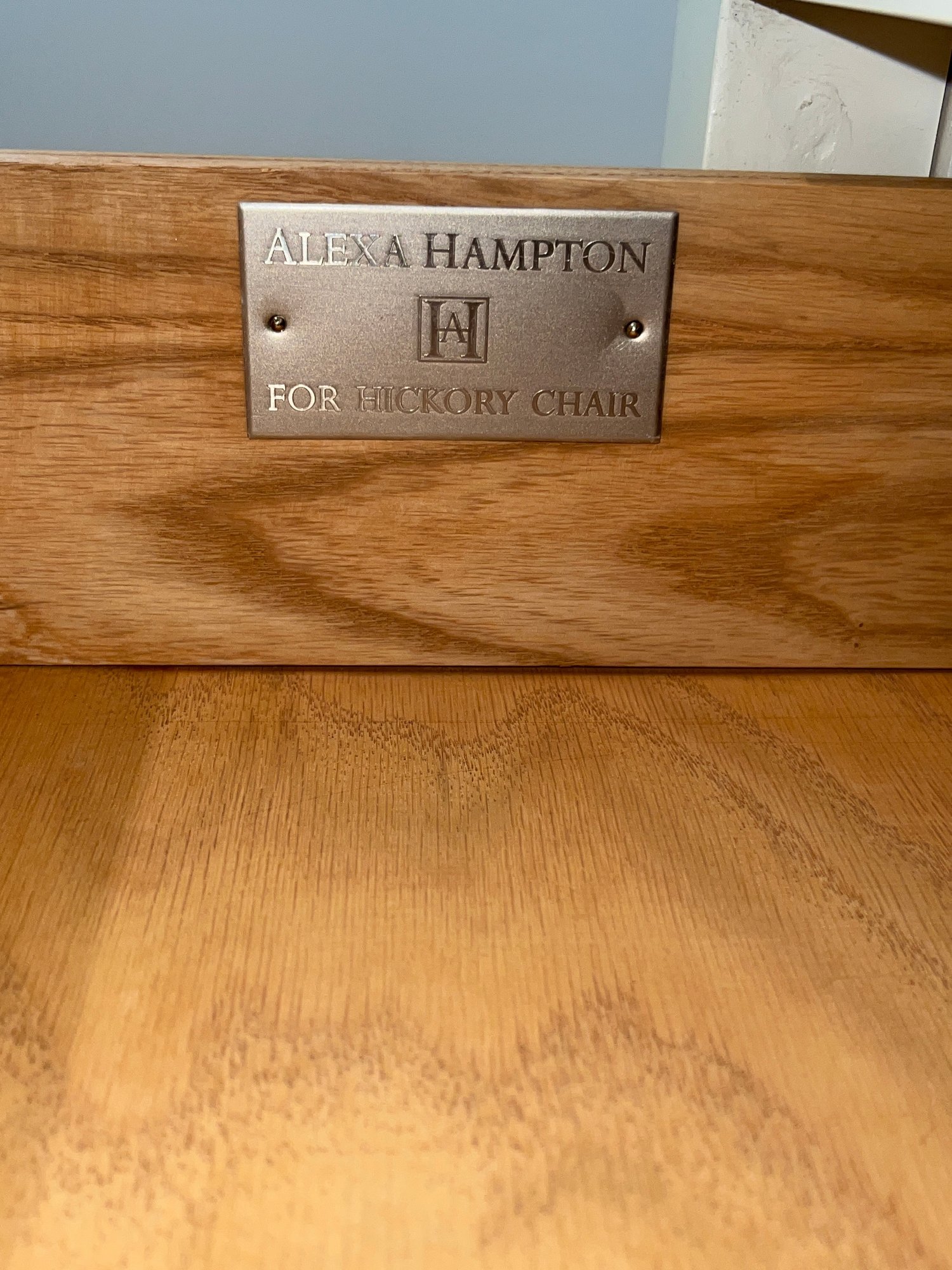 Alexa Hampton for hickory chair company end table with dovetailing, brass knobs and feet. Nicely done.