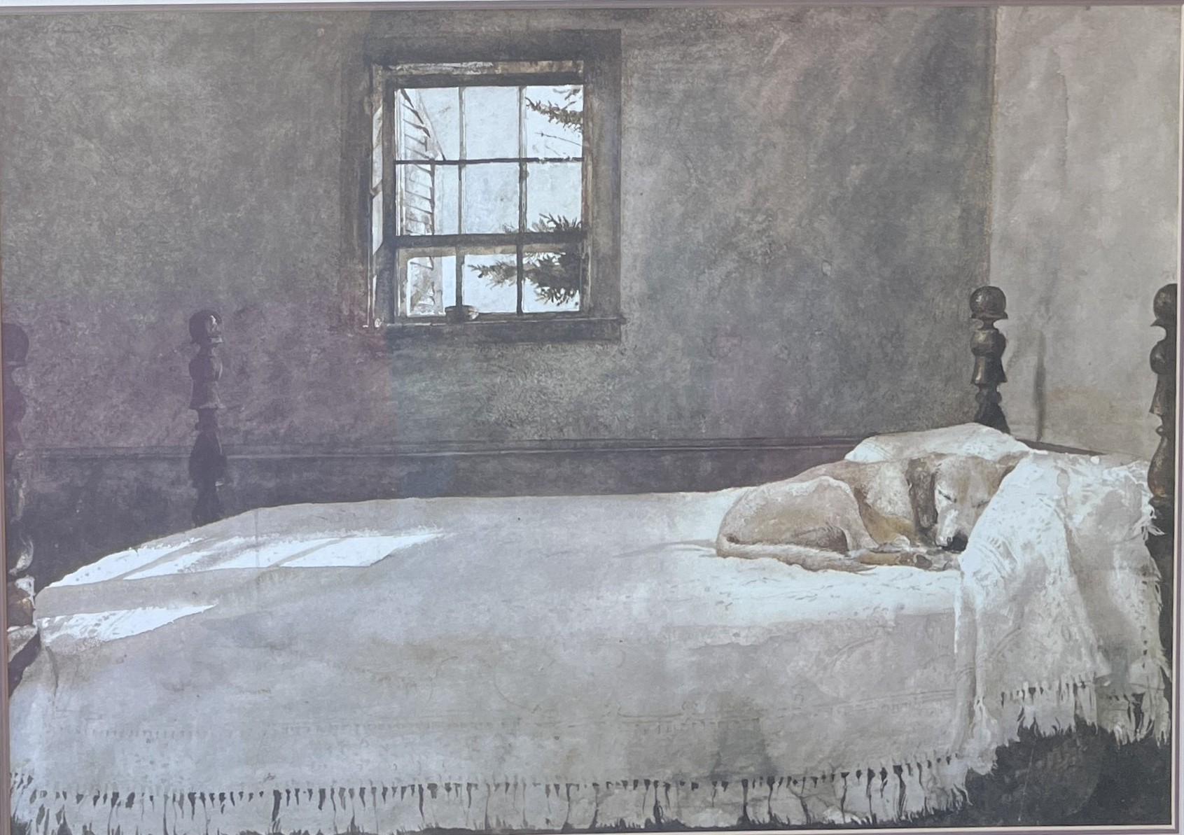 Andrew Wyeth print with driftwood style frame " Master Bedroom" 33.25" x 26.5" framed