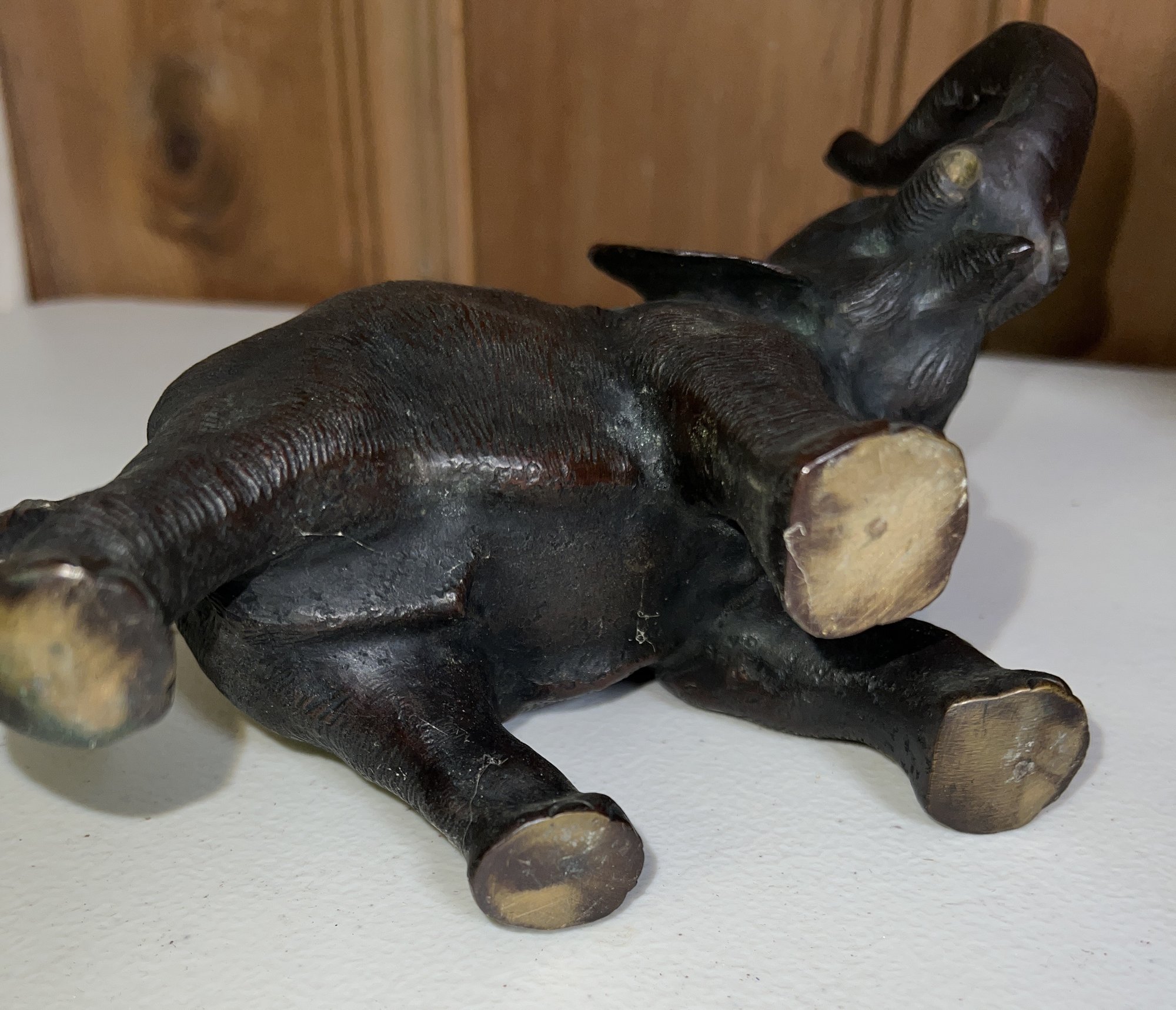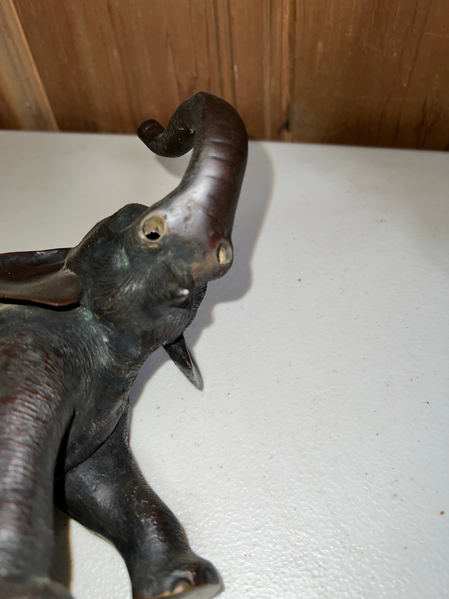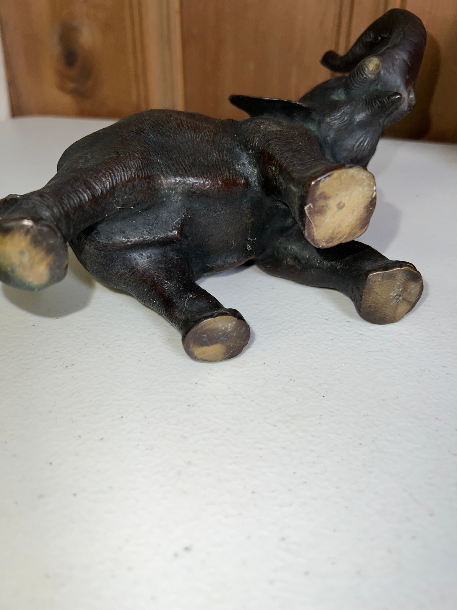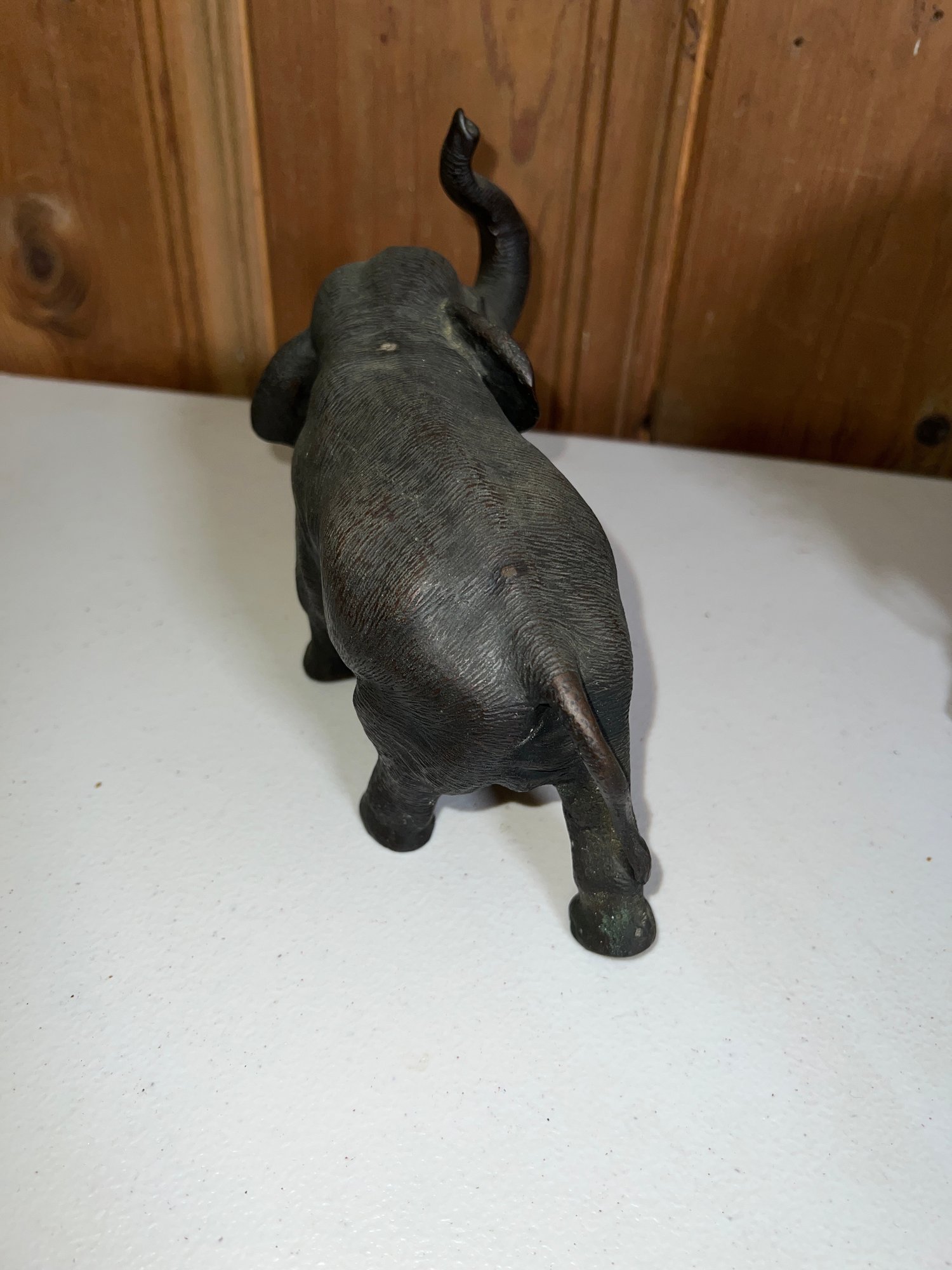 White metal elephant (no tusks) 7"L x 4.5" H