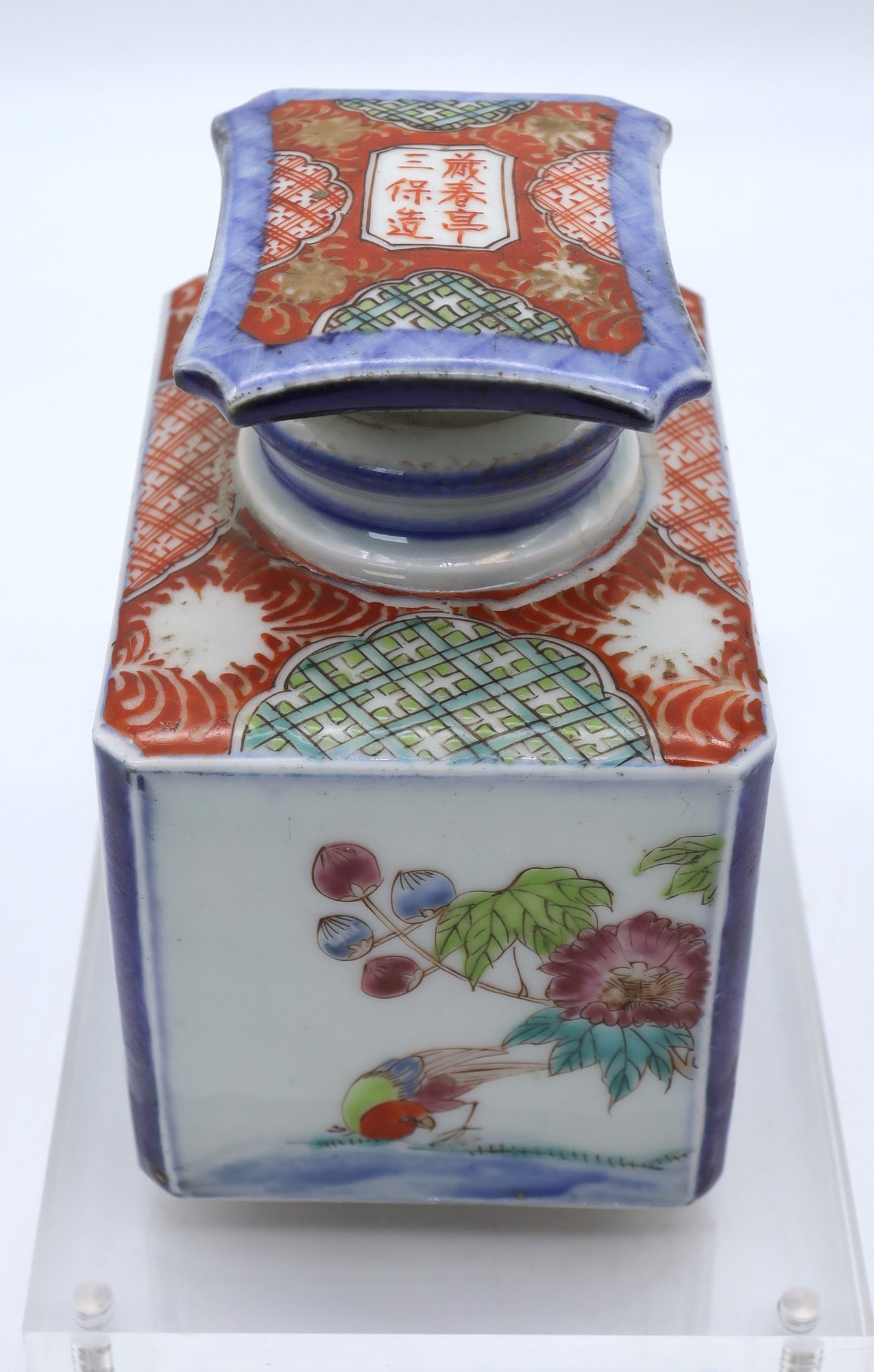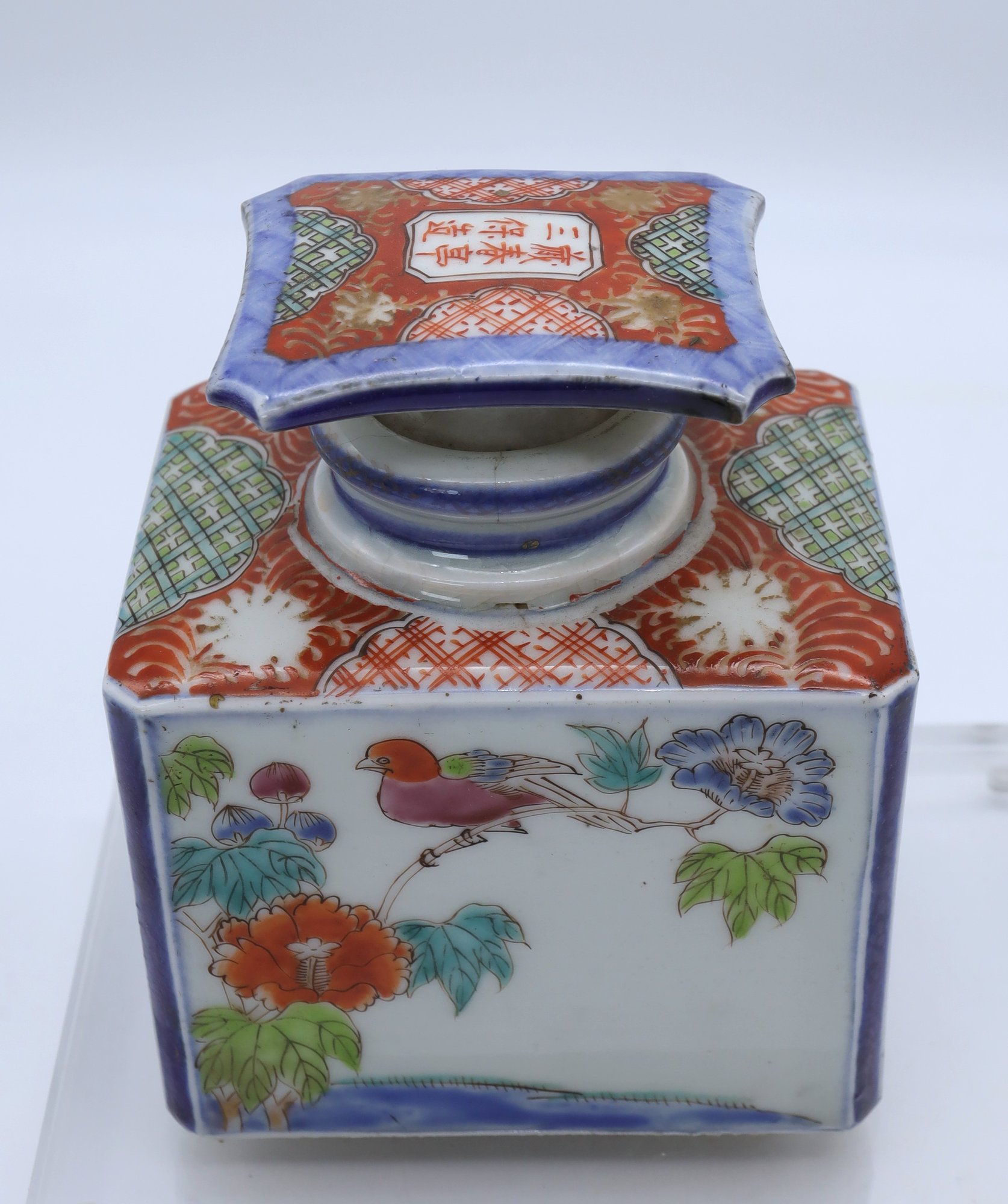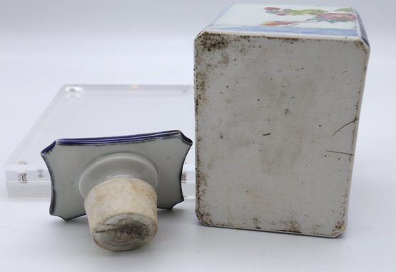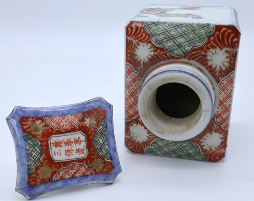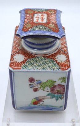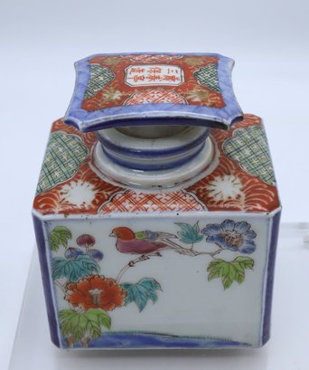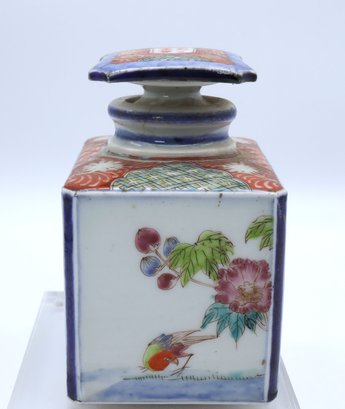 Antique Porcelain Tea caddy signed on the stopper- Nice condition 4.5"H
