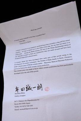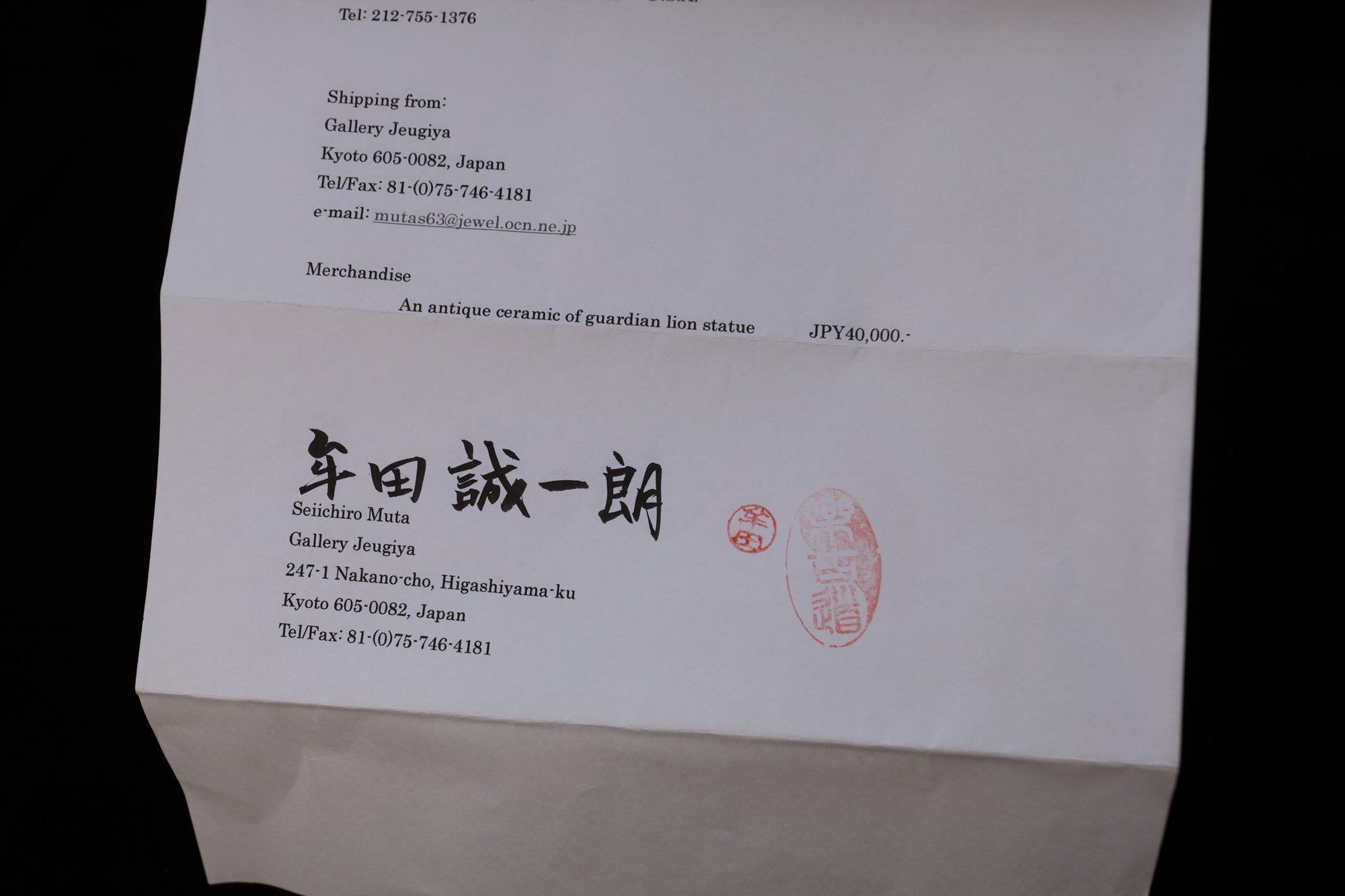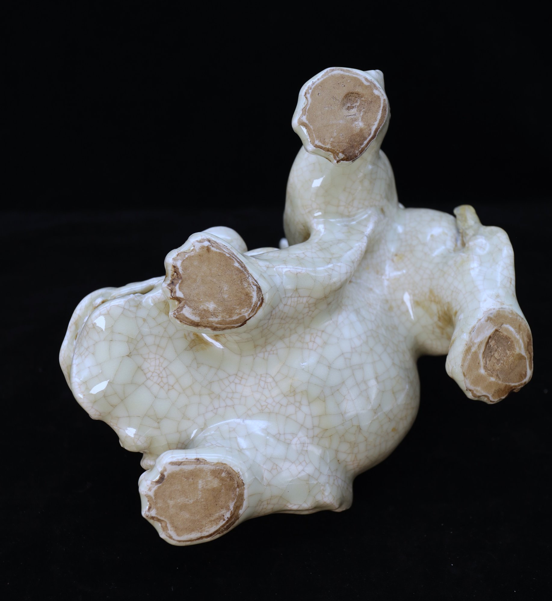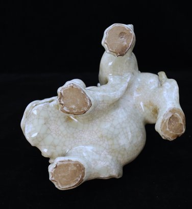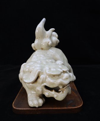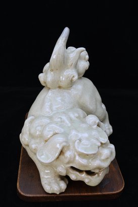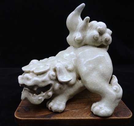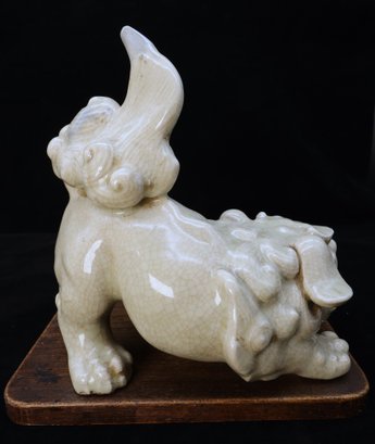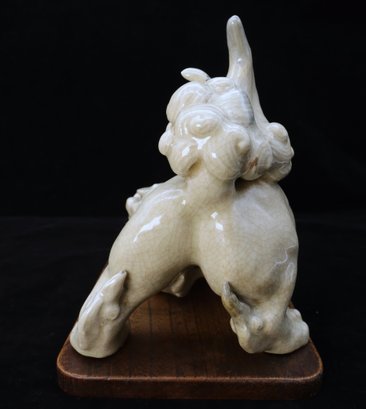 C.1900 Ceramic Of Guardian Lion Statue with green celadon crackle glaze. Production of Kyoto.
