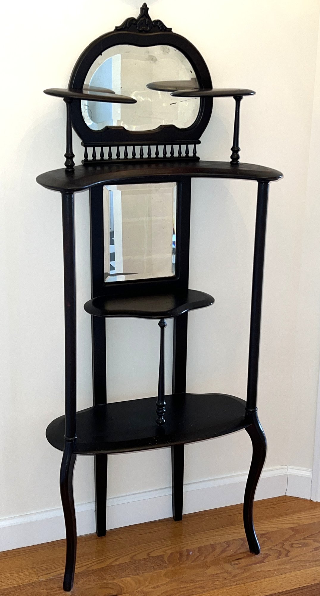 Early 20th century mahogany etagere /curio with shelves and beveled mirrors.