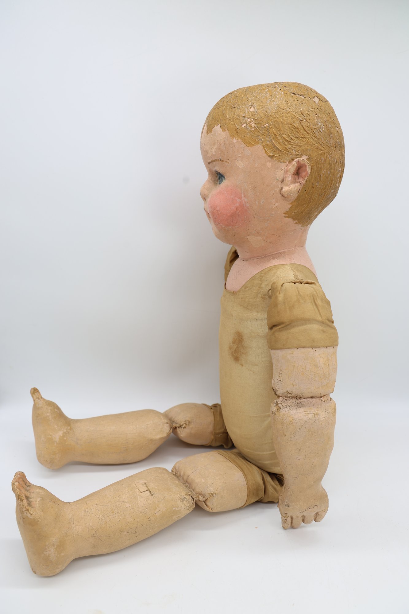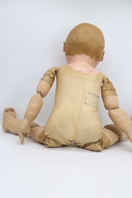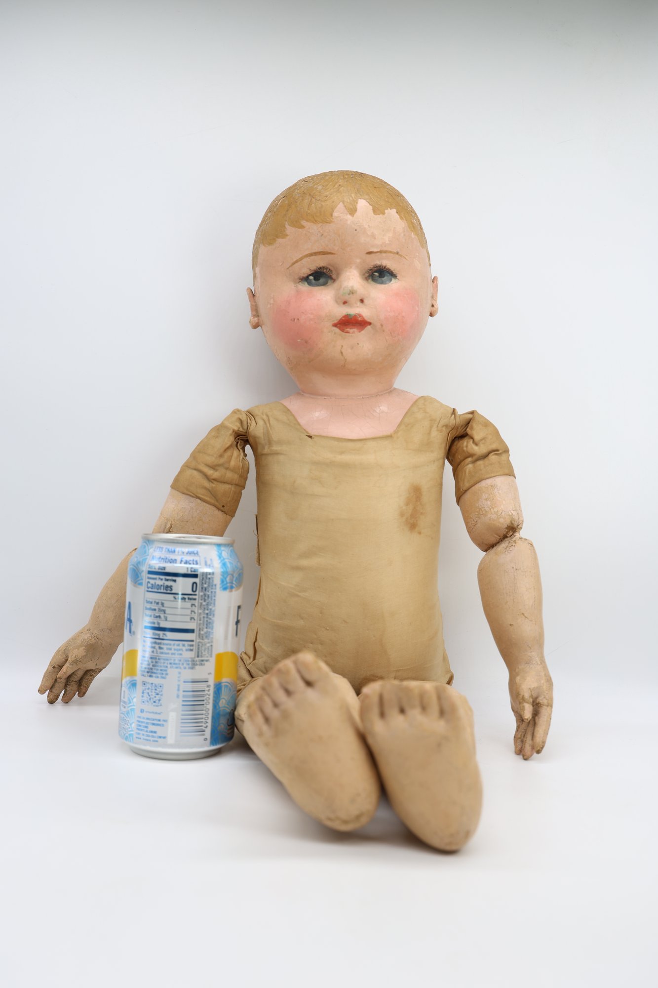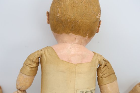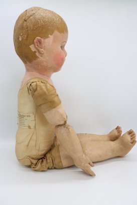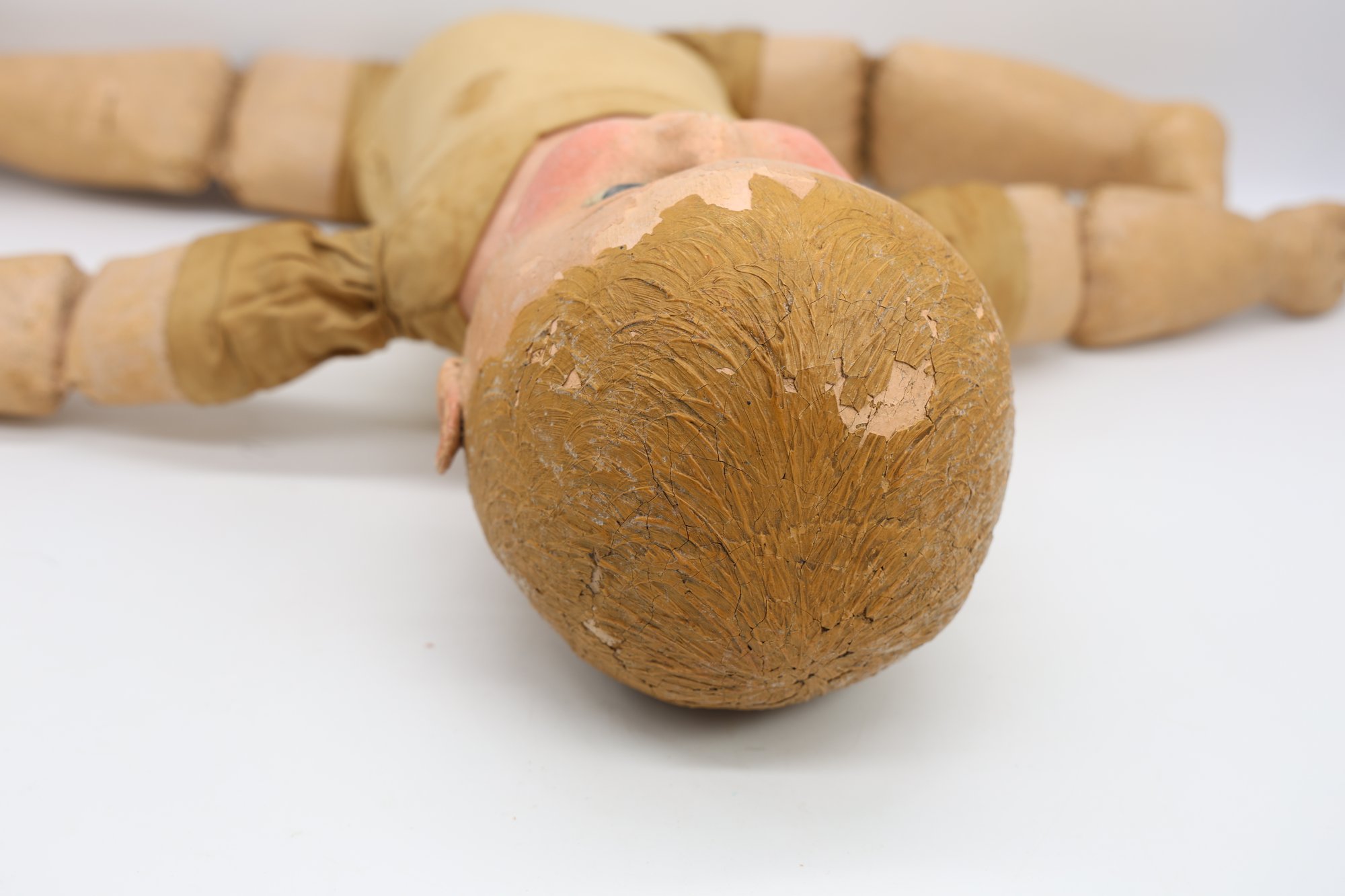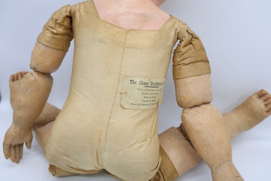 24"L Martha Chase hand-painted oil cloth doll, circa 1920s. Original paint with some loss due to crazing Made by hand. See photos for condition.