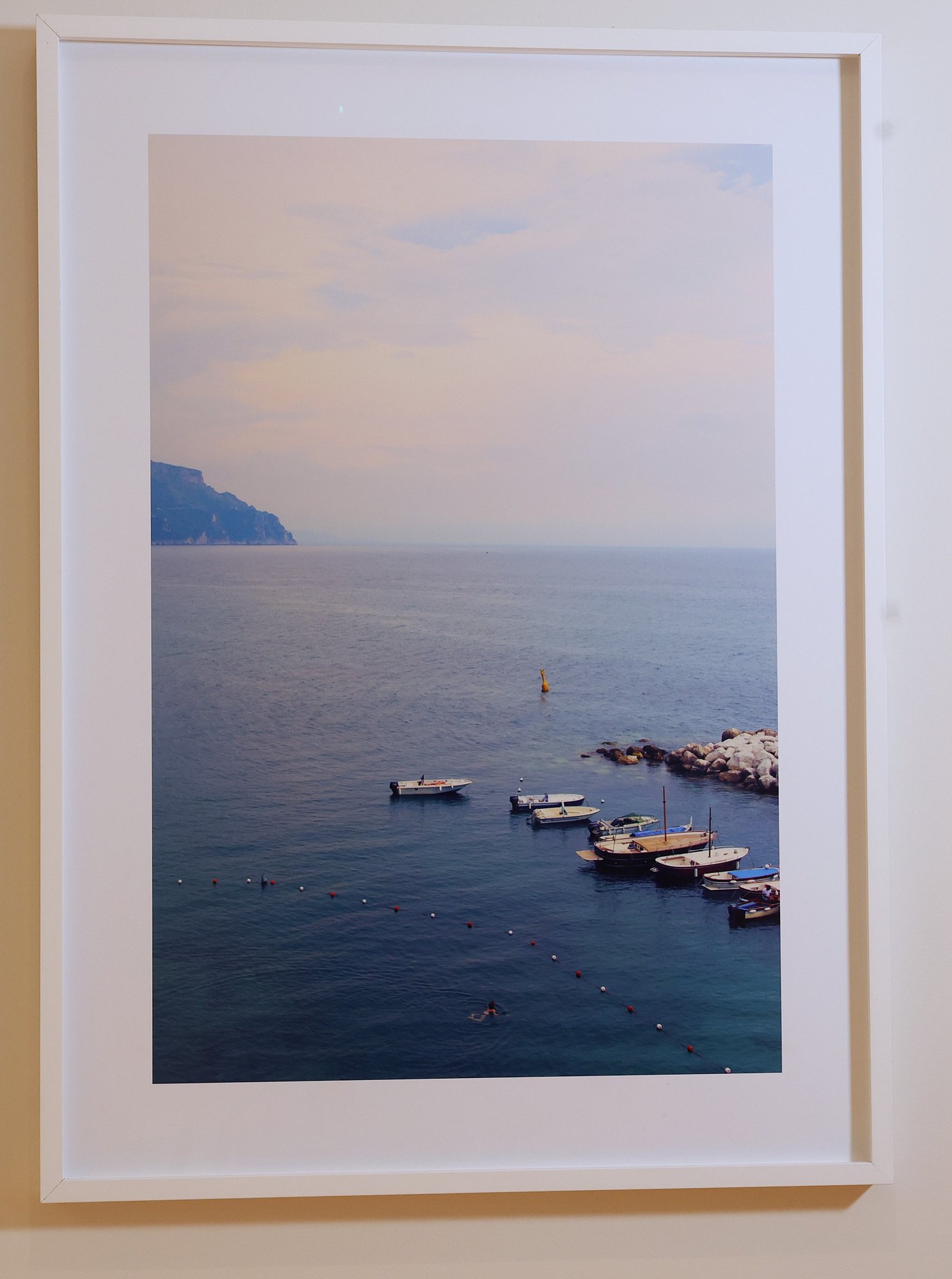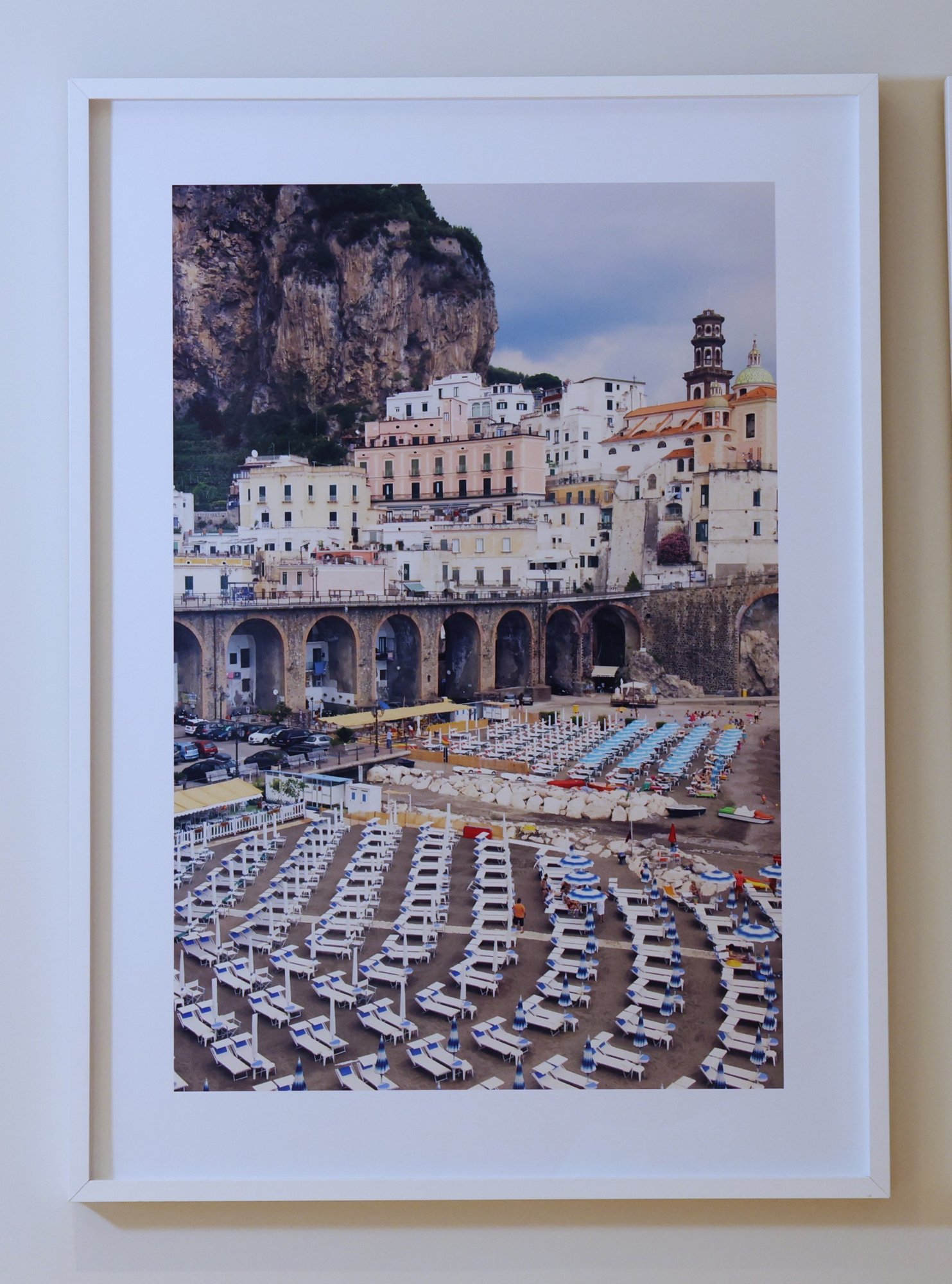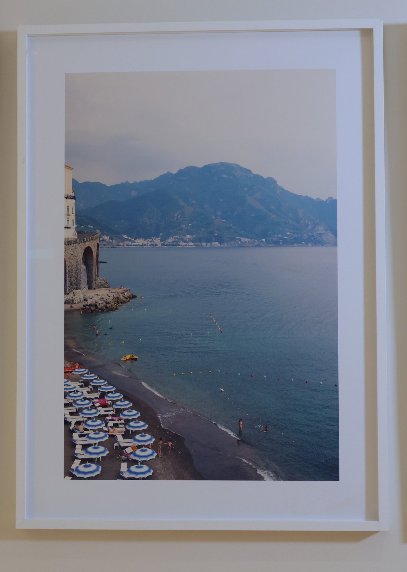 Lovely pieces by Gray Malin in white frames.