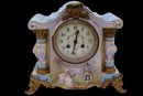 Hand painted scenes of figures with Ormolu mounts- The clock is winding and ticking when tested.
