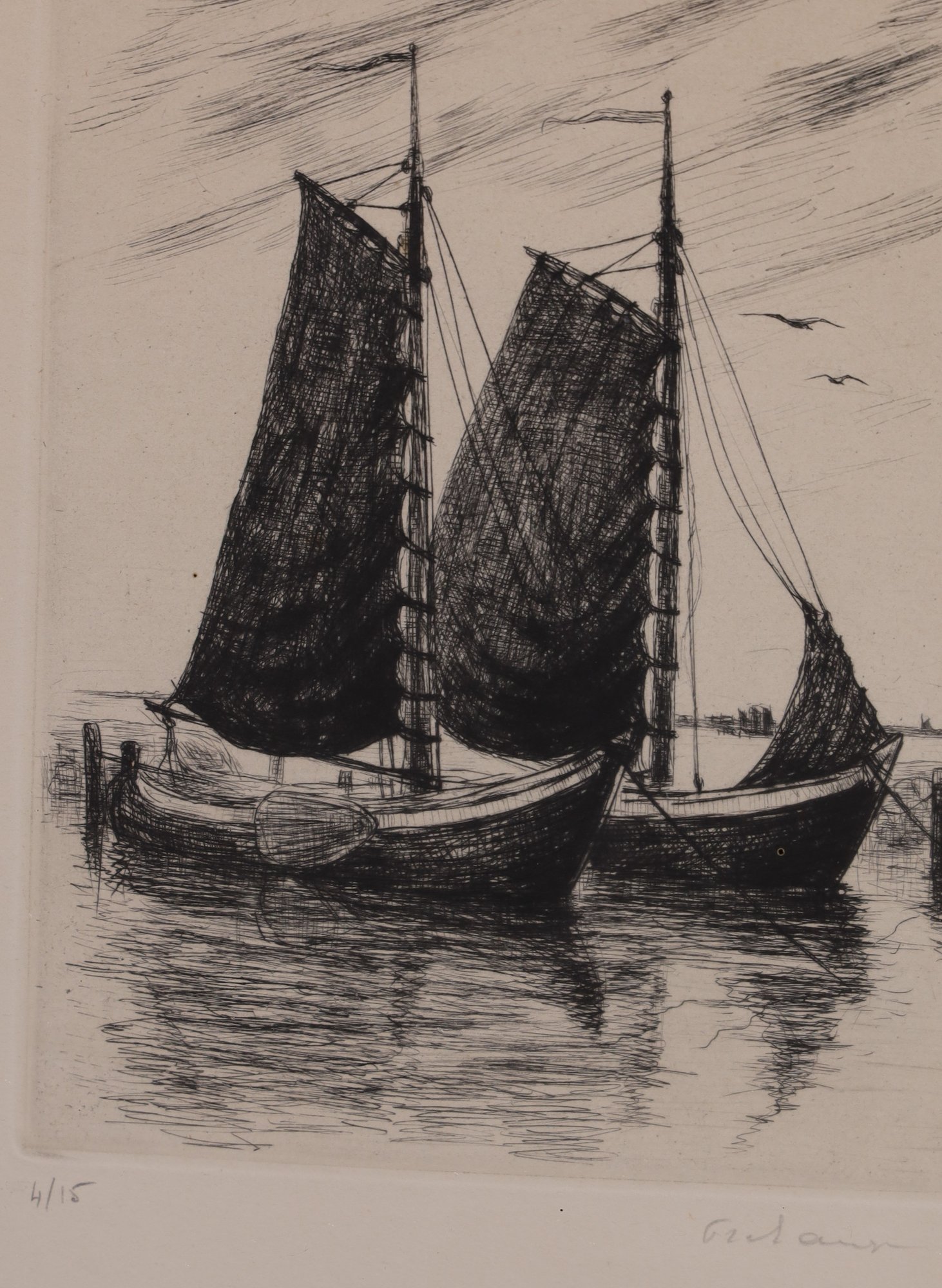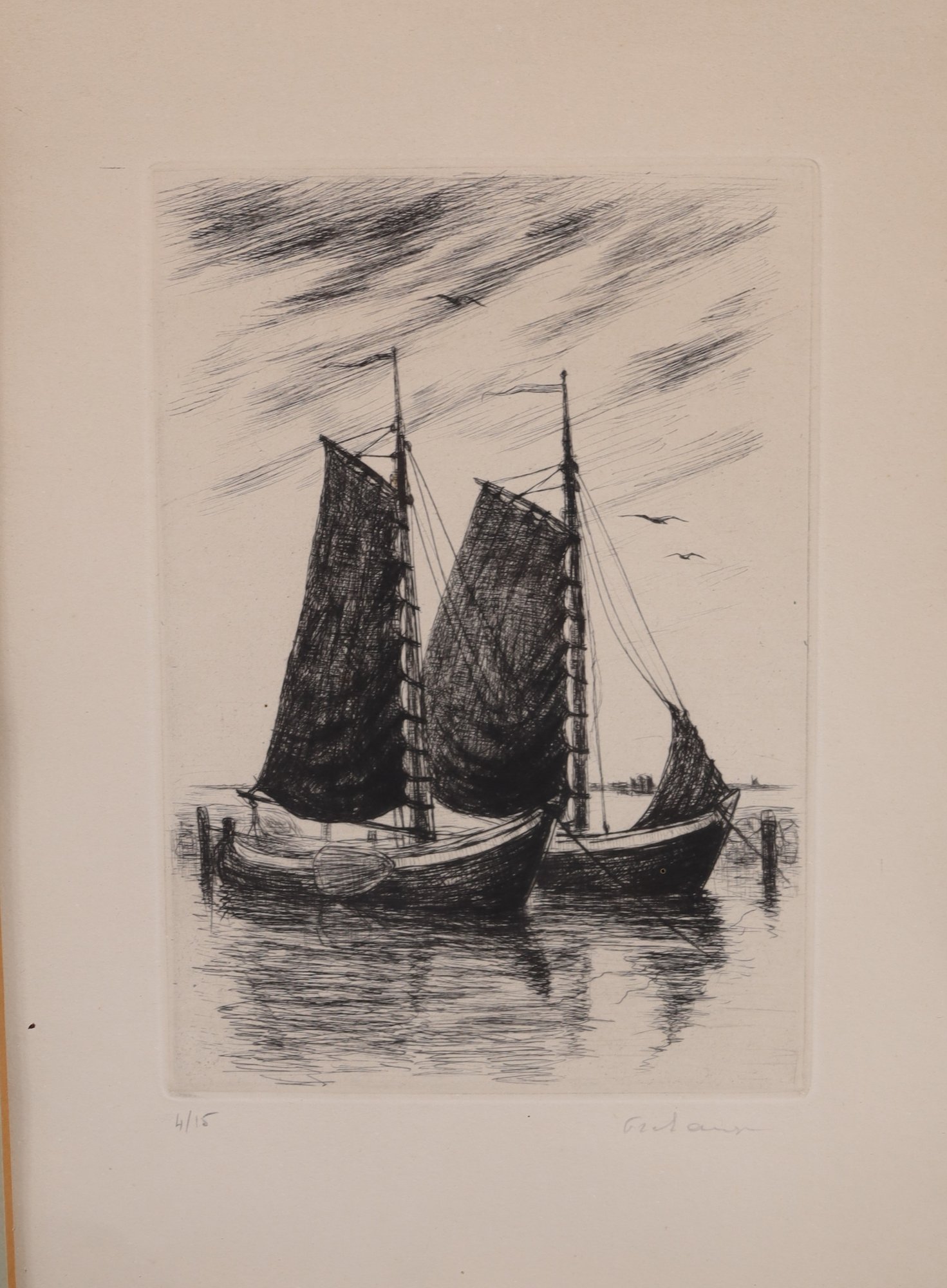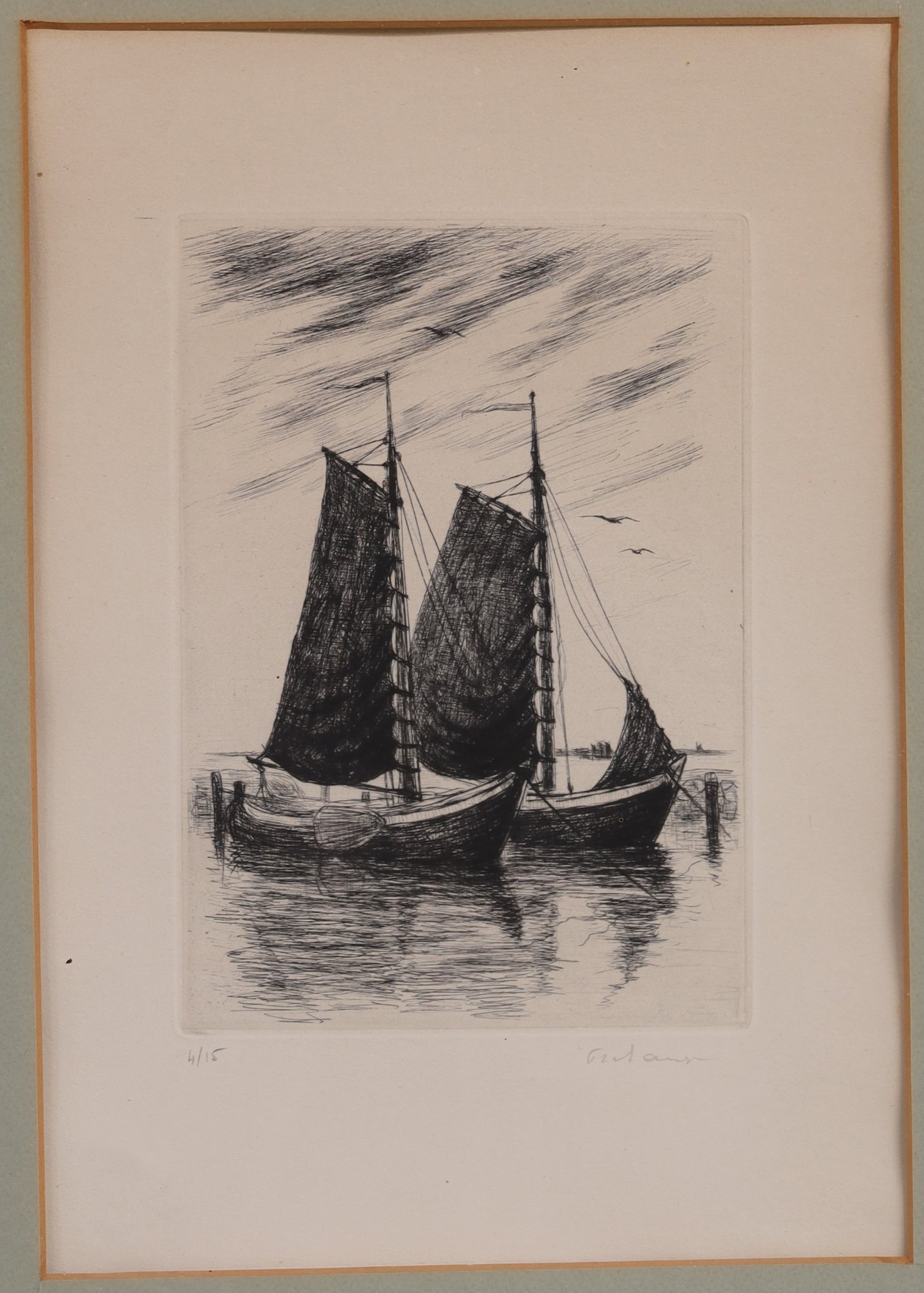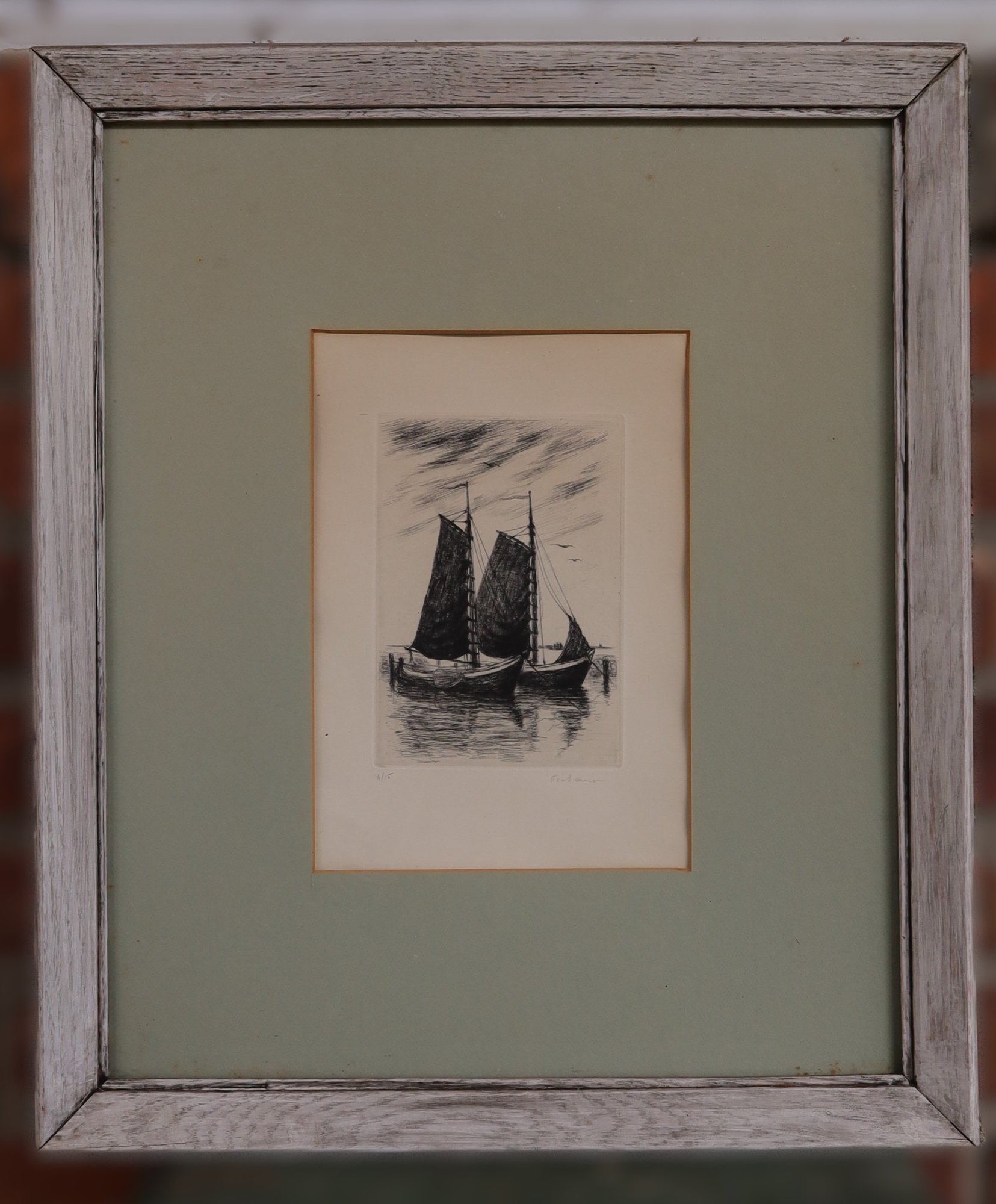 Numbered 4/15 and pencil signed lower right. Nicely matted with wood frame.