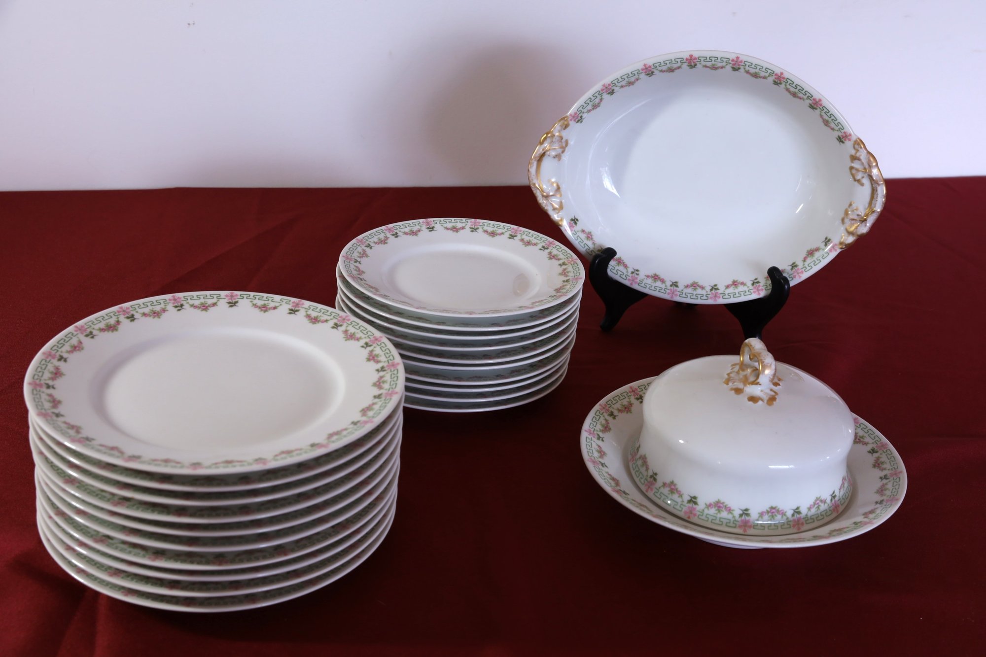 3 platters 18.5, 13.75" & 11.5" (wear to the gold on the handles)