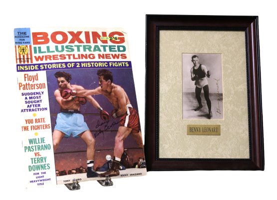 Benny Leonard American professional boxer 1896-1947- fountain pen signed 5" x 3"- 9" x 11.5" framed