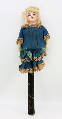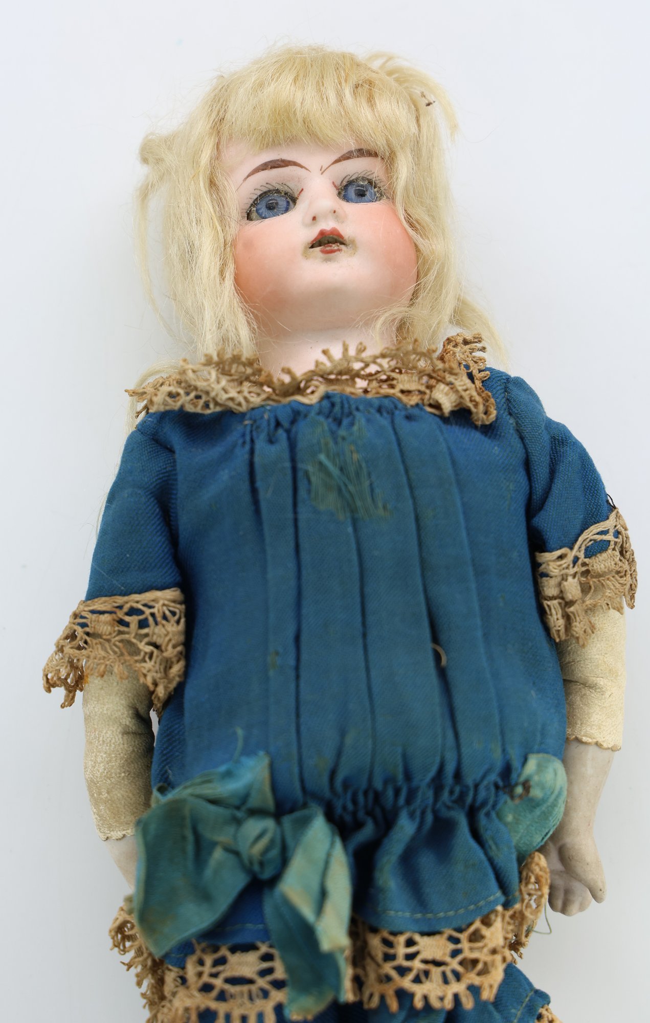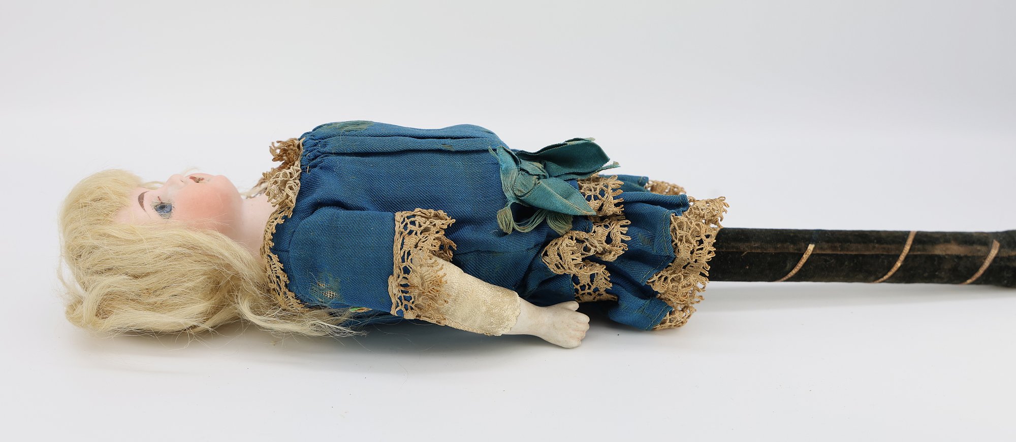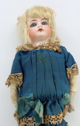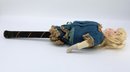 Leather arms and bisque hands- original clothing , hand painted (music not working)
