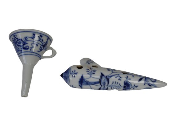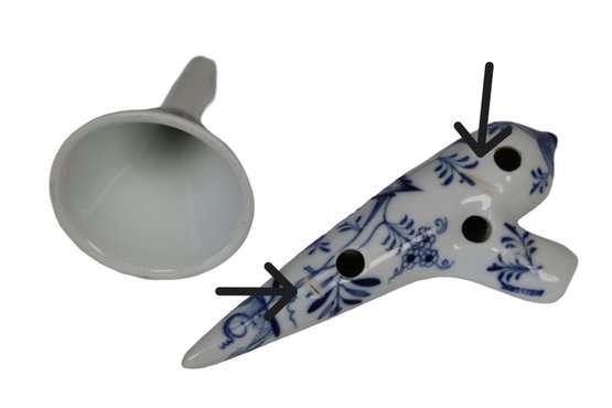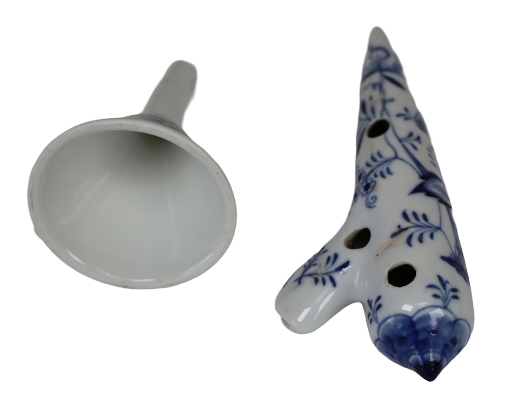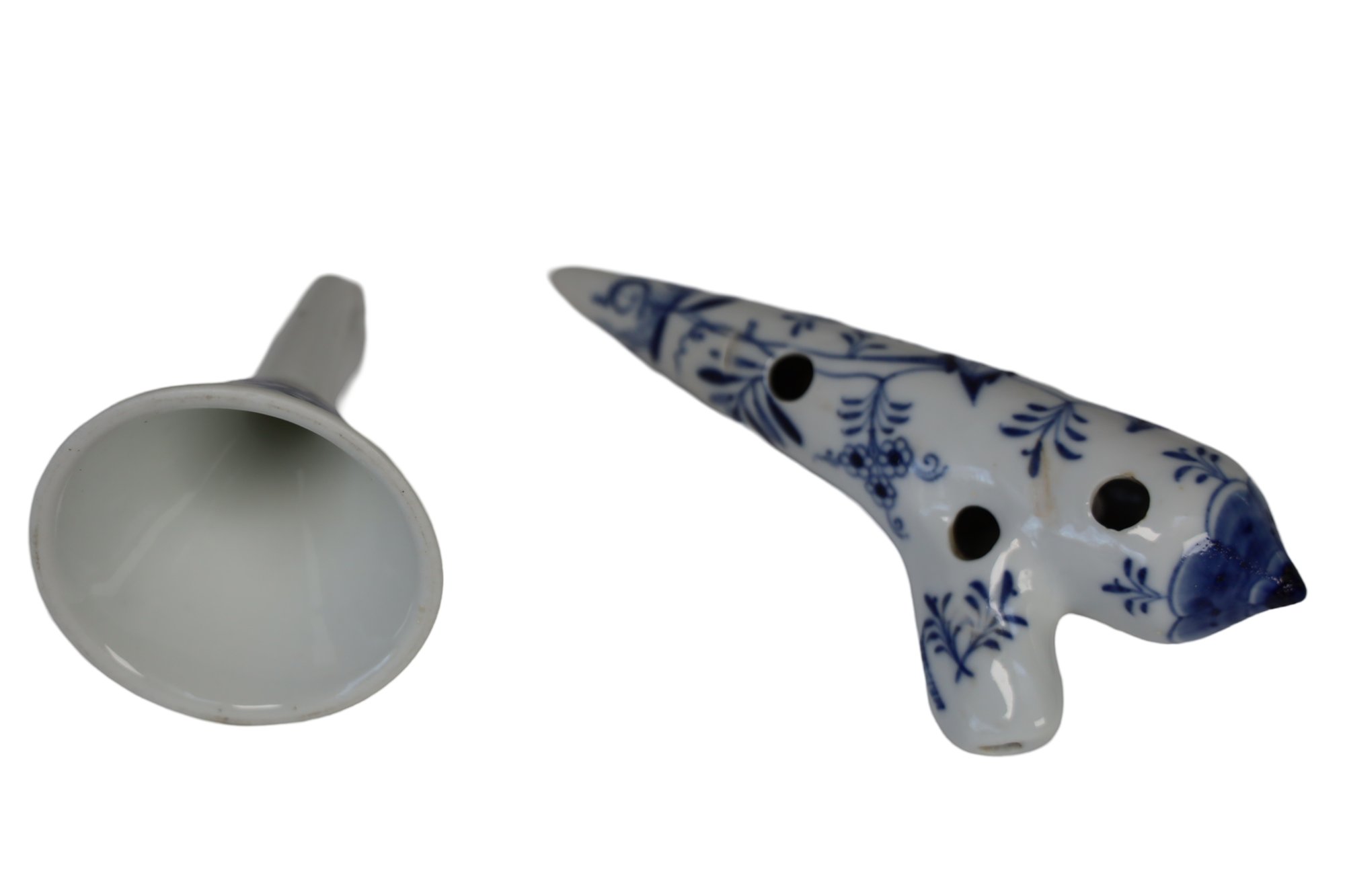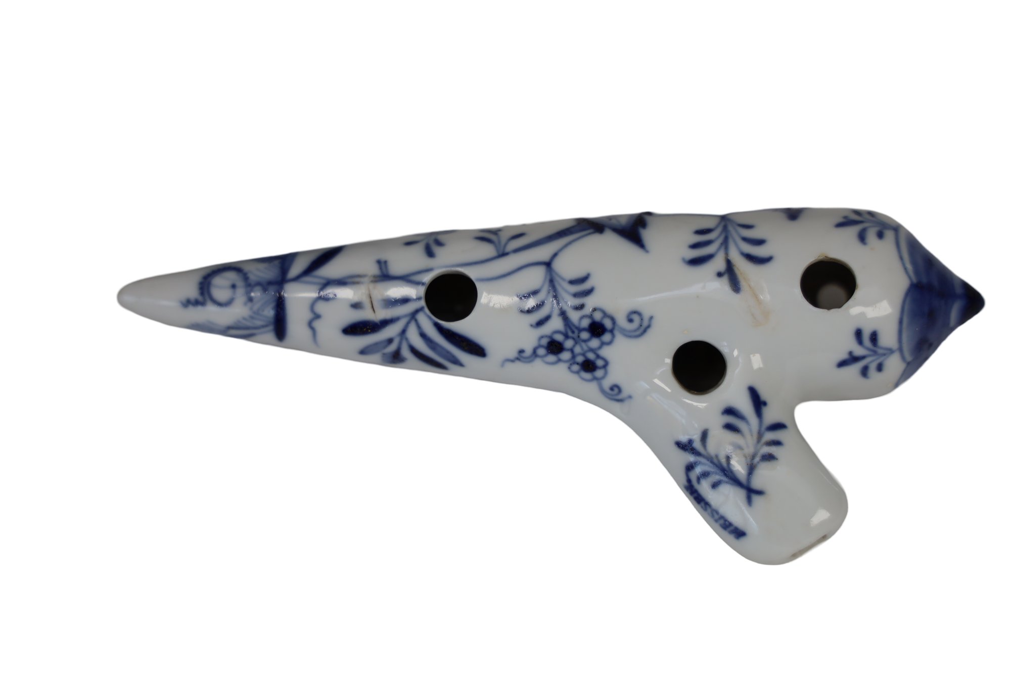 Porcelain Ocarina, in Blue Onion pattern - 7.5" x 3" W.