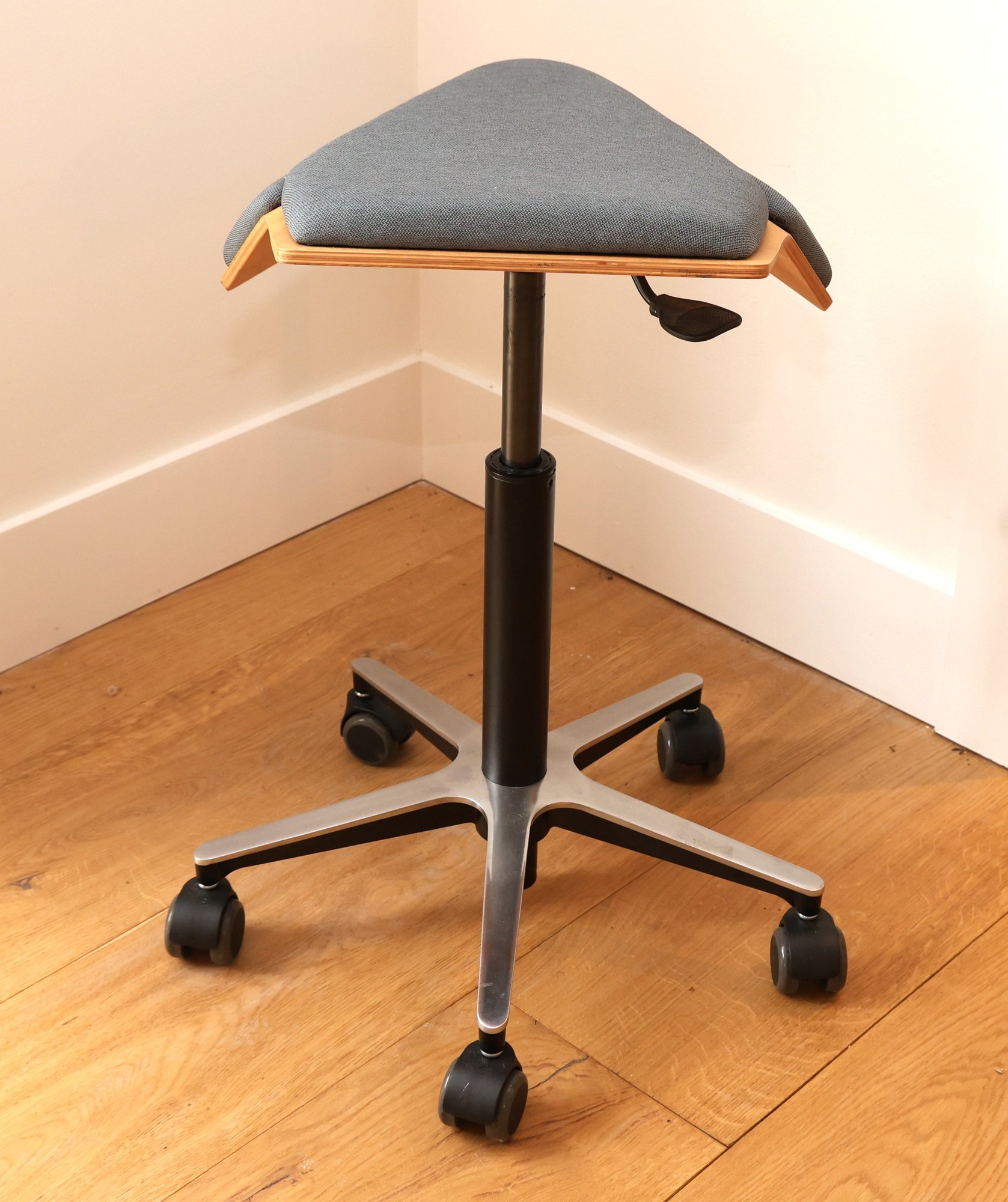 Branch saddle chair, the ergonomic chair. It is designed to promote healthier, active sitting posture by aligning the spine and core. Adjustable heights.