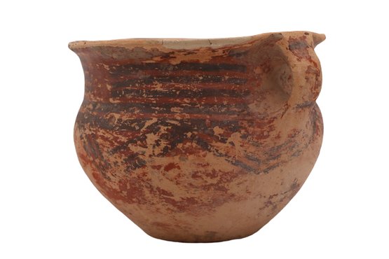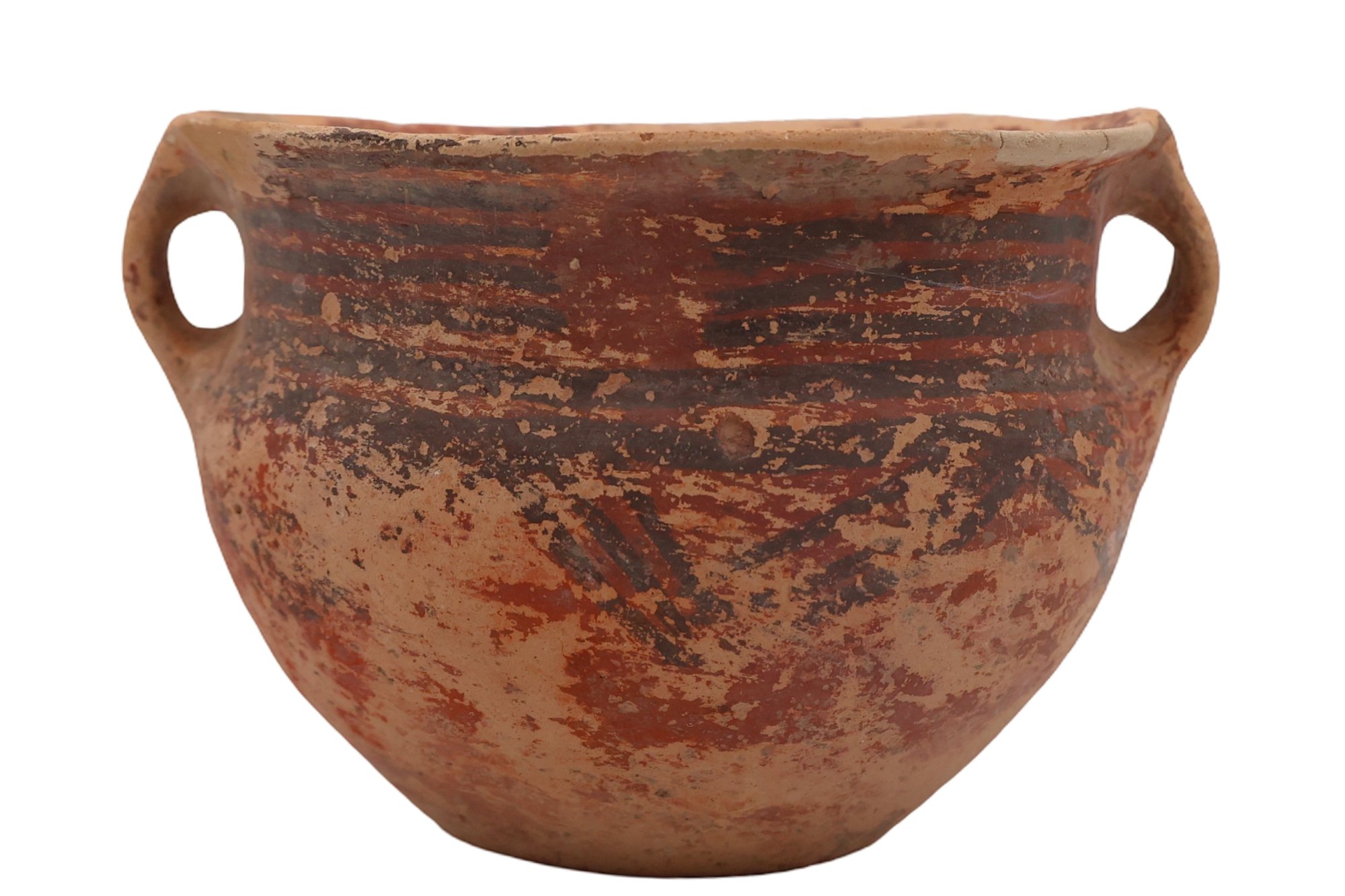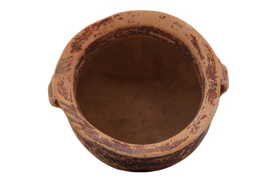 Small Chinese clay pot with geometric designs. This was used in the kitchen . In amazing condition for it being from 2000BC - 4000BC. GREAT piece of Chinese history.