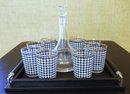set of 8 circle ware vintage drinking glasses - black and white with gold trim 4.75" H